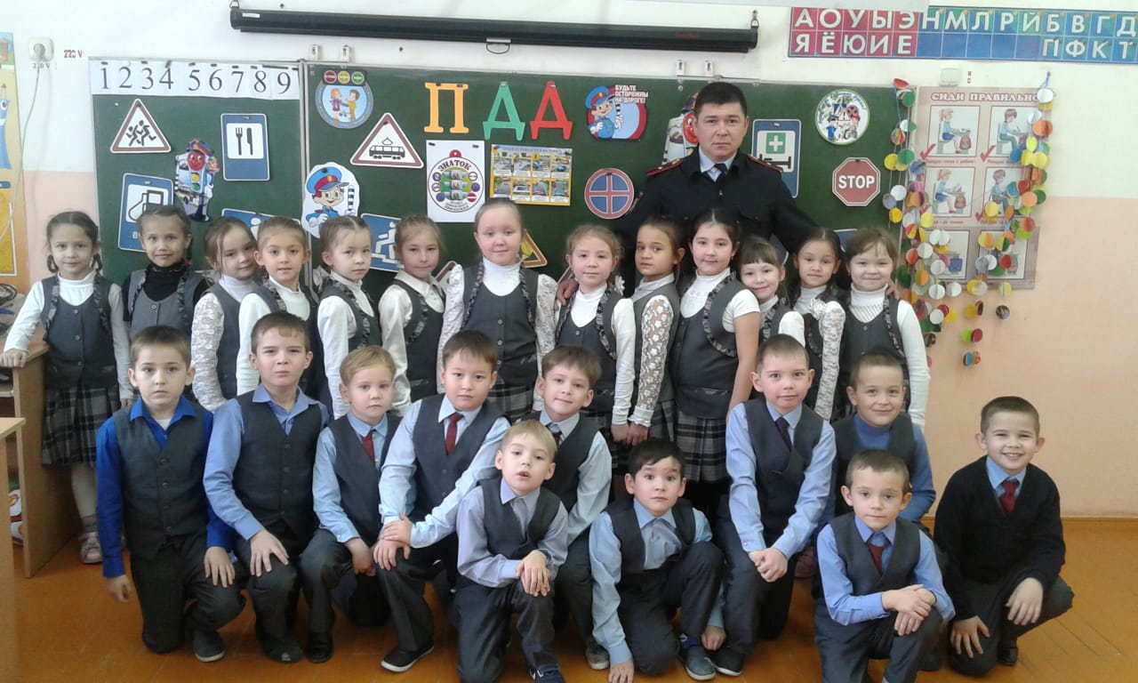 Сафин Венер Рамильевич представил обучающимся 1в и г классов историю образования и становления дорожно – патрульной службы, рассказал о появлении первых дорожных указателей, регулировщиков, Правил дорожного движения.   Также был затронут вопрос о том, кто стоял у истоков образования службы ГАИ в с.Верхние Татышлы. В стихотворной форме объяснил значение дорожных знаков. Он интересно рассказал детям,  как вести себя на улице и как надо выполнять правила дорожного движения. Дети активно участвовали в диалоге, задавали интересующие их вопросы. Проигрывали различные ситуации поведения пешеходов, наглядно убеждаясь в опасности нарушения правил дорожного движения для жизни и здоровья нарушителя и окружающих его людей.
