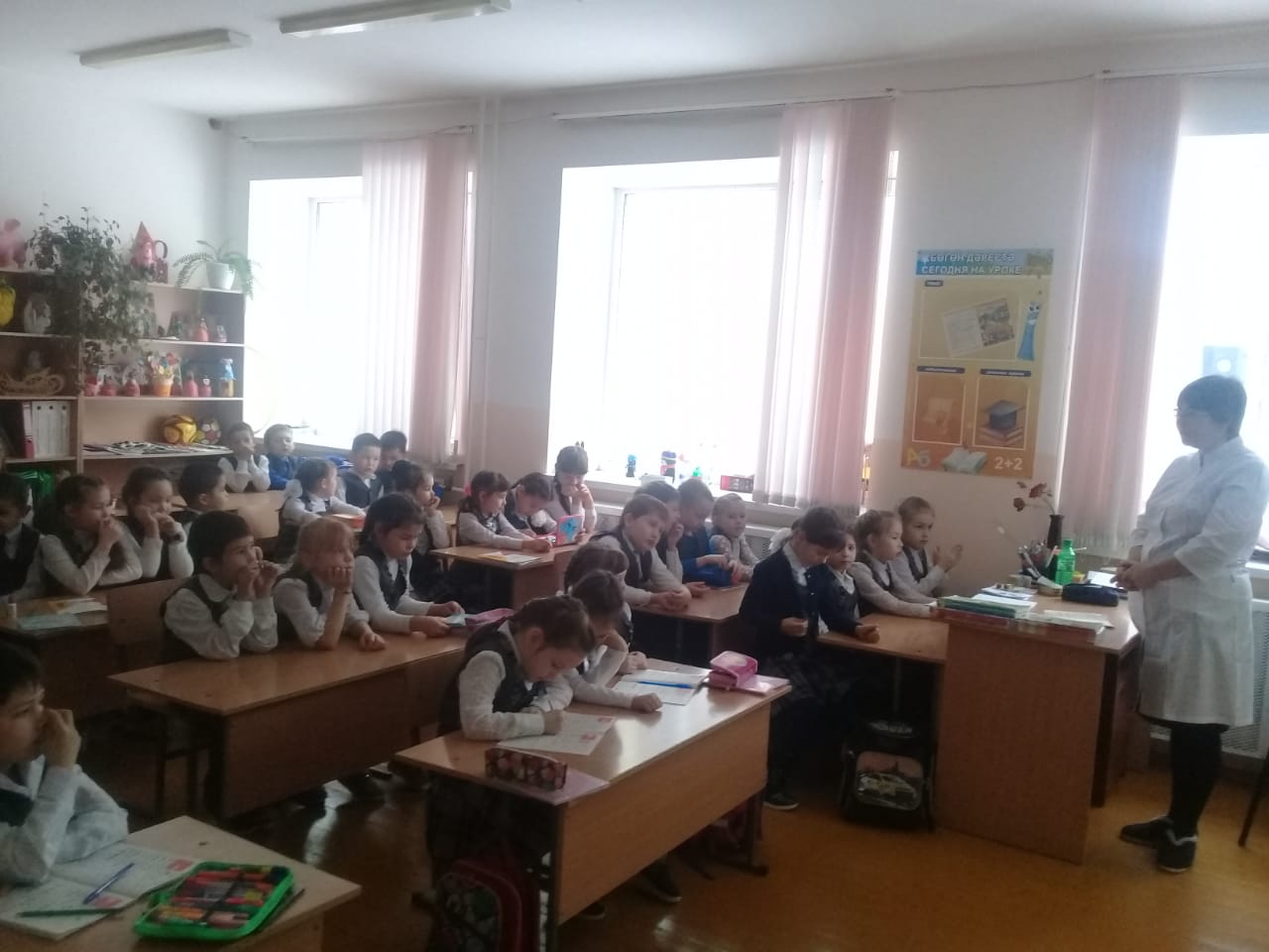 В рамках данной акции с обучающимися первых классов прошли беседы на тему «Будущее зависит от нас» с приглашением фельдшера школы Ямалетдиновой Ленарии Назгатовны. Первым делом дети ответили на вопрос, что значит «Будущее зависит от нас»? Ответы детей были разные, интересные, у каждого свое мнение. По ходу беседы поговорили о личной гигиене, о профилактике гриппа, о ведении здорового образа жизни, о роли спорта в жизни человека, рассмотрели презентацию на тему «Как сохранить свое здоровье». Встреча получилась интересной, познавательной, насыщенной.