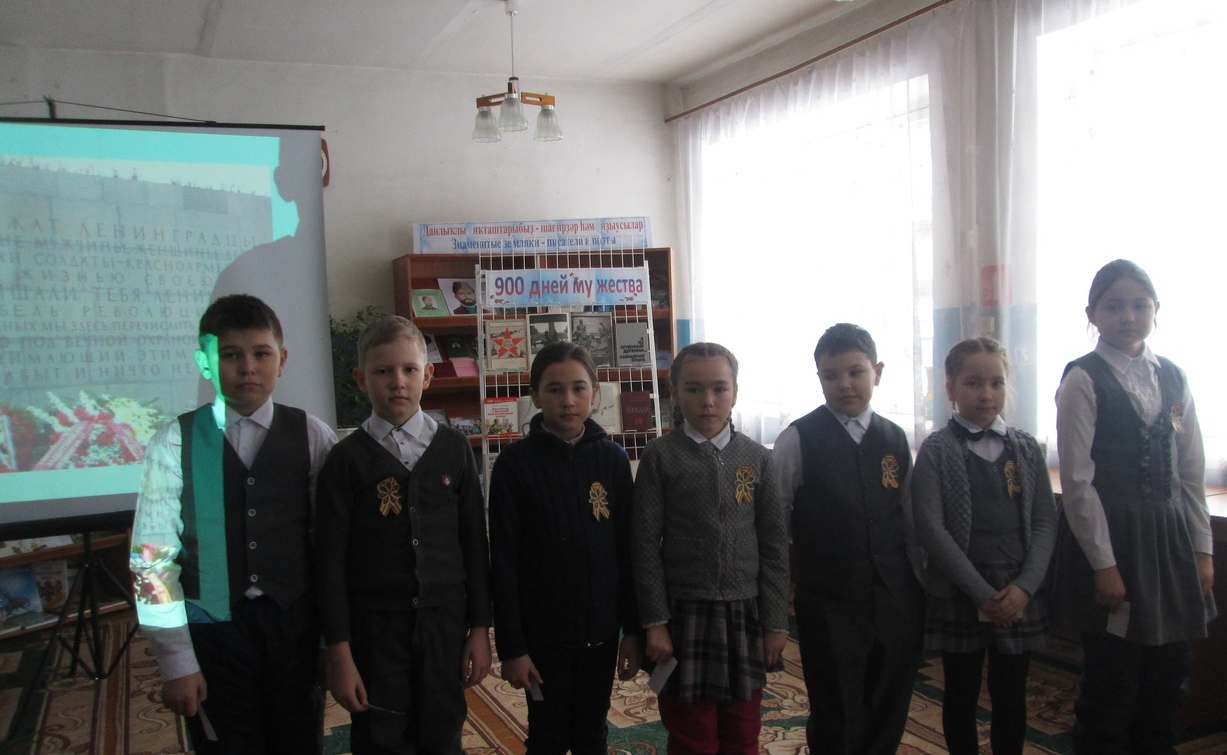27 января 1944 года 75 лет назад была прорвана блокада Ленинграда, которая продолжалась 900 долгих дней и ночей. Годовщине прорыва блокады Ленинграда Детская библиотека посвятила час памяти «Летопись блокадного Ленинграда». Участниками встречи стали учащиеся 4а,в классов МБОУСОШ №1с.Верхние Татышлы. Перед началом мероприятия ребятам прикрепили блокадную ленточку. Библиотекарь рассказала ребятам, что блокада стала самой кровопролитной блокадой в истории человечества, также рассказала про тяжелую жизнь ленинградцев в те нелегкие для всей страны времена, как жители отдавали последние силы во имя Победы, во имя сохранения города. Вниманию учащихся была представлена презентация «Блокада Ленинграда»,  наглядно показывающая ребятам тяжелую жизнь ленинградцев в те нелегкие для всей страны времена. Большой интерес вызвал у них просмотр роликов «Мальчишки у стен Ленинграда», «Дорога жизни», «Дети блокады». В ходе мероприятия вспомнили также о дневнике одиннадцатилетней школьницы Тани Савичевой. В конце мероприятия под звук метронома ребята почтили память погибших во время блокады минутой молчания. Вниманию учащихся была оформлена книжная выставка «900 дней мужества», где были представлены книги об этой страшной трагедии. Мы, нынешнее поколение, помним и чтим, проявленный героизм и подвиг наших предков!