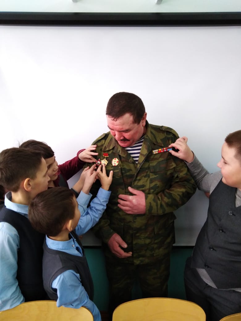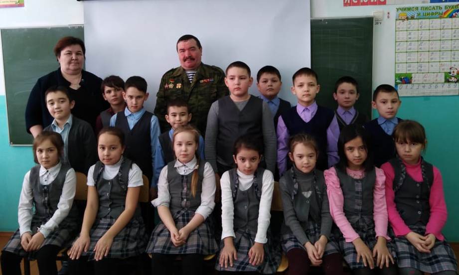 В рамках Месячника военно-патриотического воспитания в 3б и 3г классах 11 февраля прошел классный час «Эхо афганской войны», посвященный 30-летию со дня завершения спецоперации советских войск в Афганистане. Почетным гостем мероприятия стал ветеран войны в Афганистане Киямов Талгат Алтафович. Ребята услышали рассказ о войне, о воинах-афганцах, просмотрели видеоряд хроники тех времен. Классный час завершился коллективной фотографией на память.