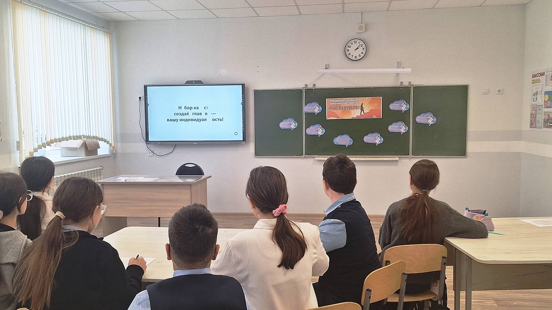Существует множество профессий, и люди, работающие в них, тоже разные. Учащиеся узнали, что, кроме интереса к конкретной профессиональной среде, нужно учитывать и личные качества, проявляющиеся в разных ситуациях. Это и общительность, и эмоциональность, и стрессоустойчивость. Без учёта этих качеств невозможно чувствовать себя в выбранной профессии комфортно и органично. Ребята посмотрели видеоролик, решали кроссворд «Мои качества», работали в группах. Занятие дало возможность ученикам познакомиться с новой диагностикой "Мои качества", лучше понять свои сильные стороны и сделать уверенный шаг к выбору профессии!