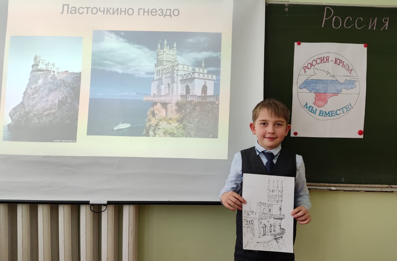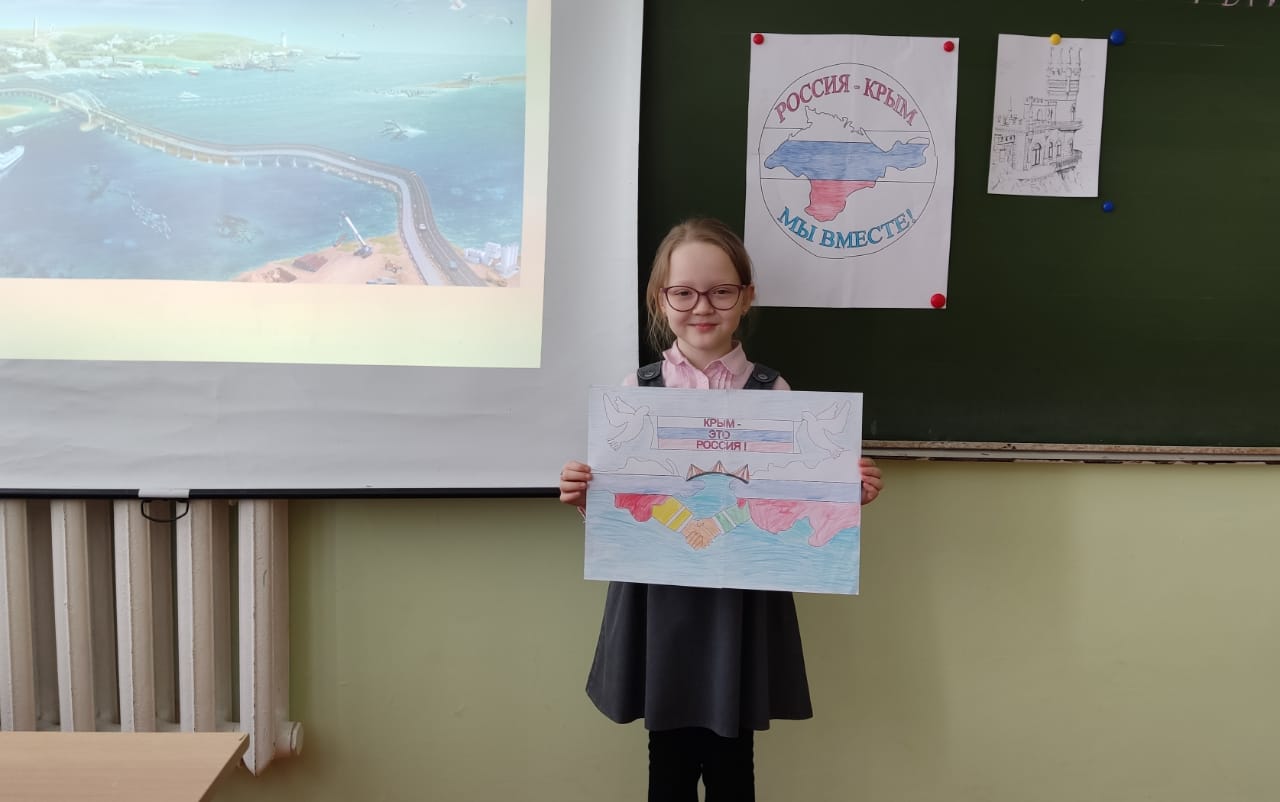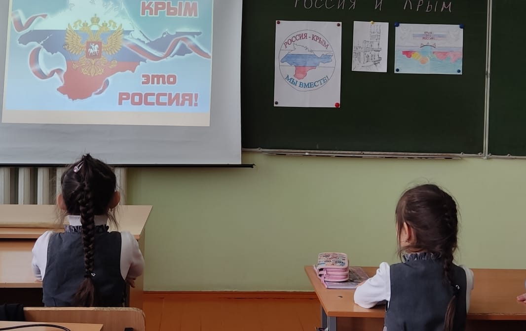 В целях развития чувства патриотизма, единства и гордости за свою многонациональную страну во 2б классе МБОУ СОШ №1 с. Верхние Татышлы был проведен классный час, посвященный воссоединению Крыма с Россией. Обучающиеся познакомились с историей, географическим положением, природой и достопримечательностями Крыма.