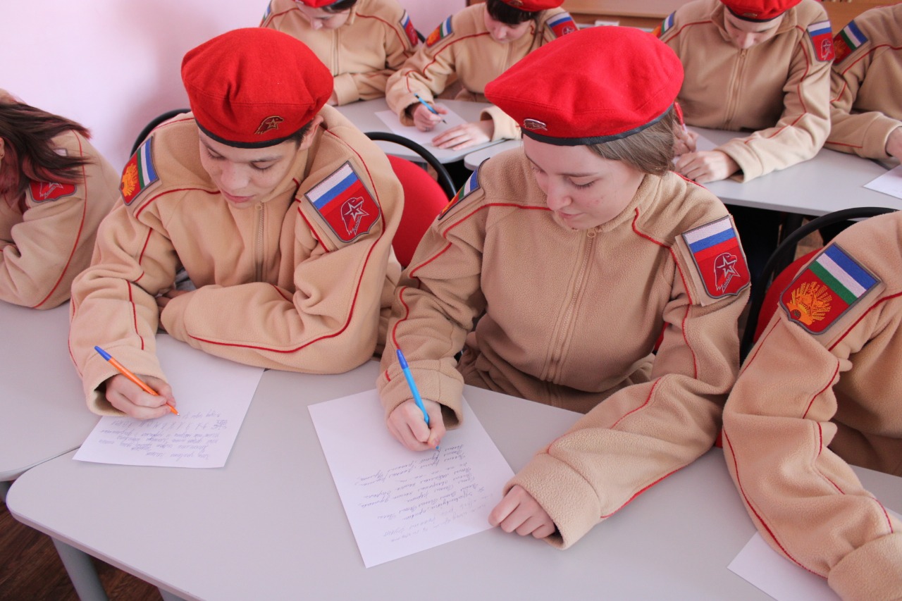 Юнармейцы МБОУ СОШ №1 с.Верхние Татышлы приняли участие во Всероссийской акции «Письмо солдату». Они написали письма со словами поддержки участникам операции.
