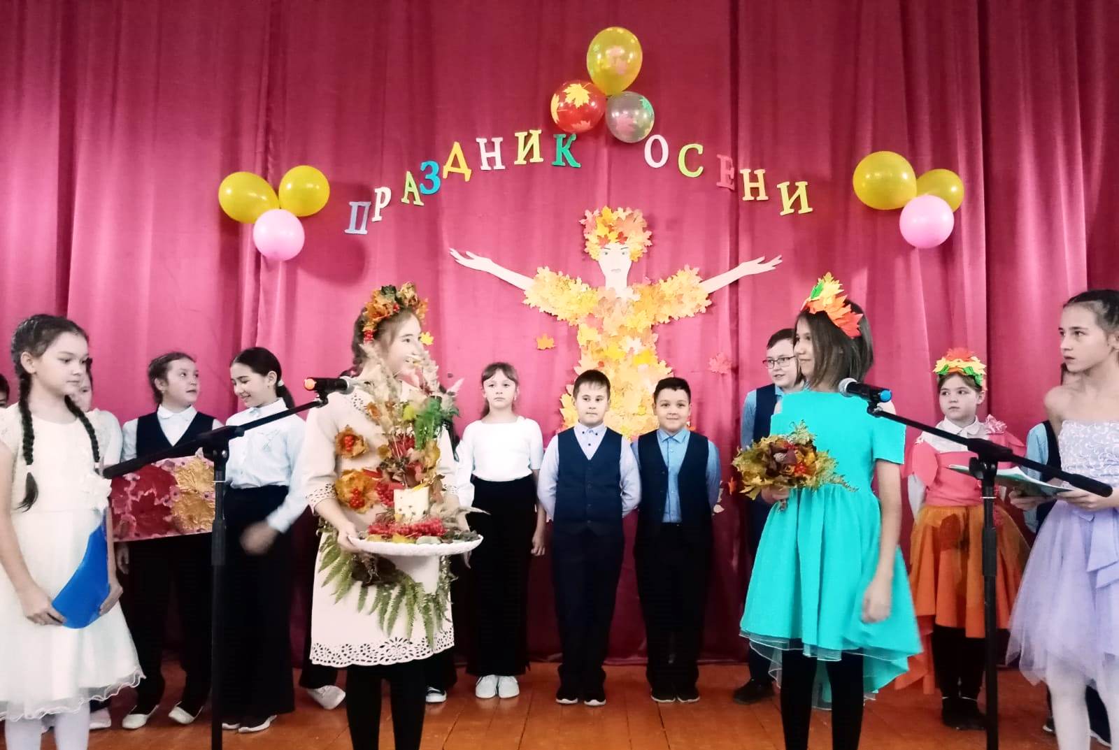 Зал был празднично украшен листьями, а композиции ребят дали осеннее настроение.