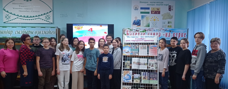 1 ноября воспитанники башкирской группы «Йәйләү» приняли участие в мероприятии «Будущее России– в единстве», которое было организовано Центральной районной библиотекой.