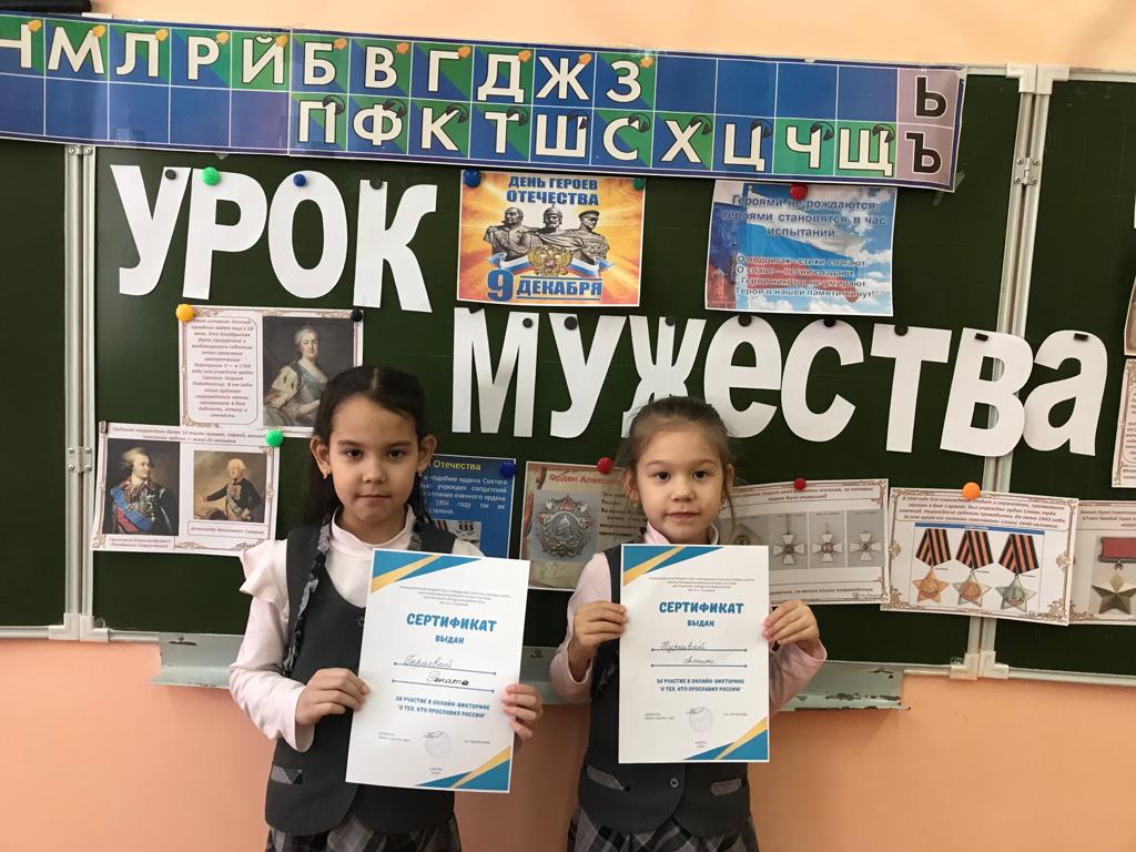 День Героев Отечества в Росси-это памятная дата, которая отмечается 9 декабря. В этот день чествуют Героев Советского Союза, Героев Российской Федерации и кавалеров ордена Святого Георгия, ордена Славы и Мужества. Ребята на классном часе узнали об истории праздника, какие бывают ордена и медали, собрали пазл с изображением орденов. Гараева Рената и Нуриева Амина участвовали в онлайн- викторине «О тех, кто прославил Россию»