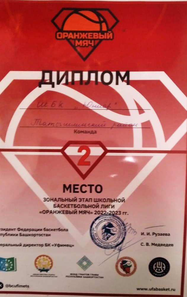 9 декабря в с. Караидель прошел III этап школьной баскетбольной лиги "Оранжевый мяч". Наши юные спортсмены заняли почетное второе место и получили право выступить на региональном этапе, который пройдет в с. Кушнаренково 1-3 февраля 2023 года. Поздравляем наших баскетболистов и желаем им дальнейших спортивных побед!