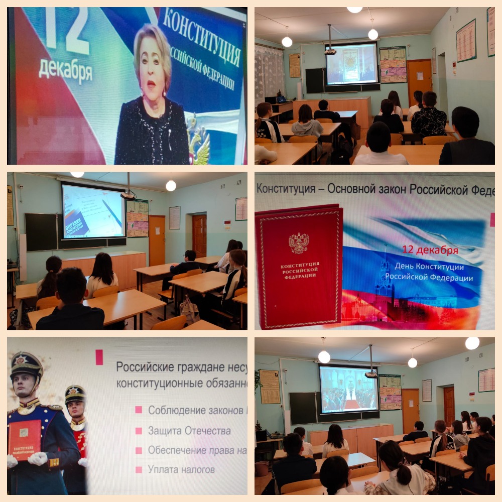 Сегодня в 7а классе прошло внеурочное занятие "Разговоры о важном», посвященное Дню Конституции. На уроке обучающиеся посмотрели видеообращение председателя Совета Федерации Матвиенко В.И, узнали, откуда произошло слово «Конституция», какие основные положения содержит Конституция, какие права и свободы гарантирует гражданам России этот документ. Ребятам также напомнили о правах и обязанностях граждан, которые предусмотрены Основным законом страны.
