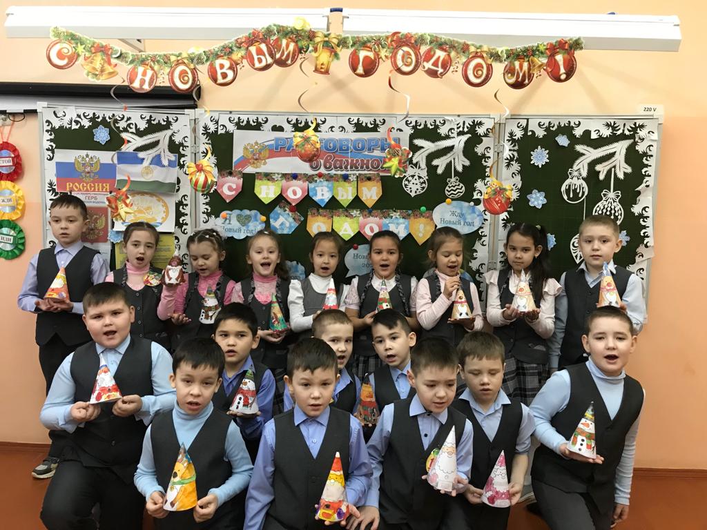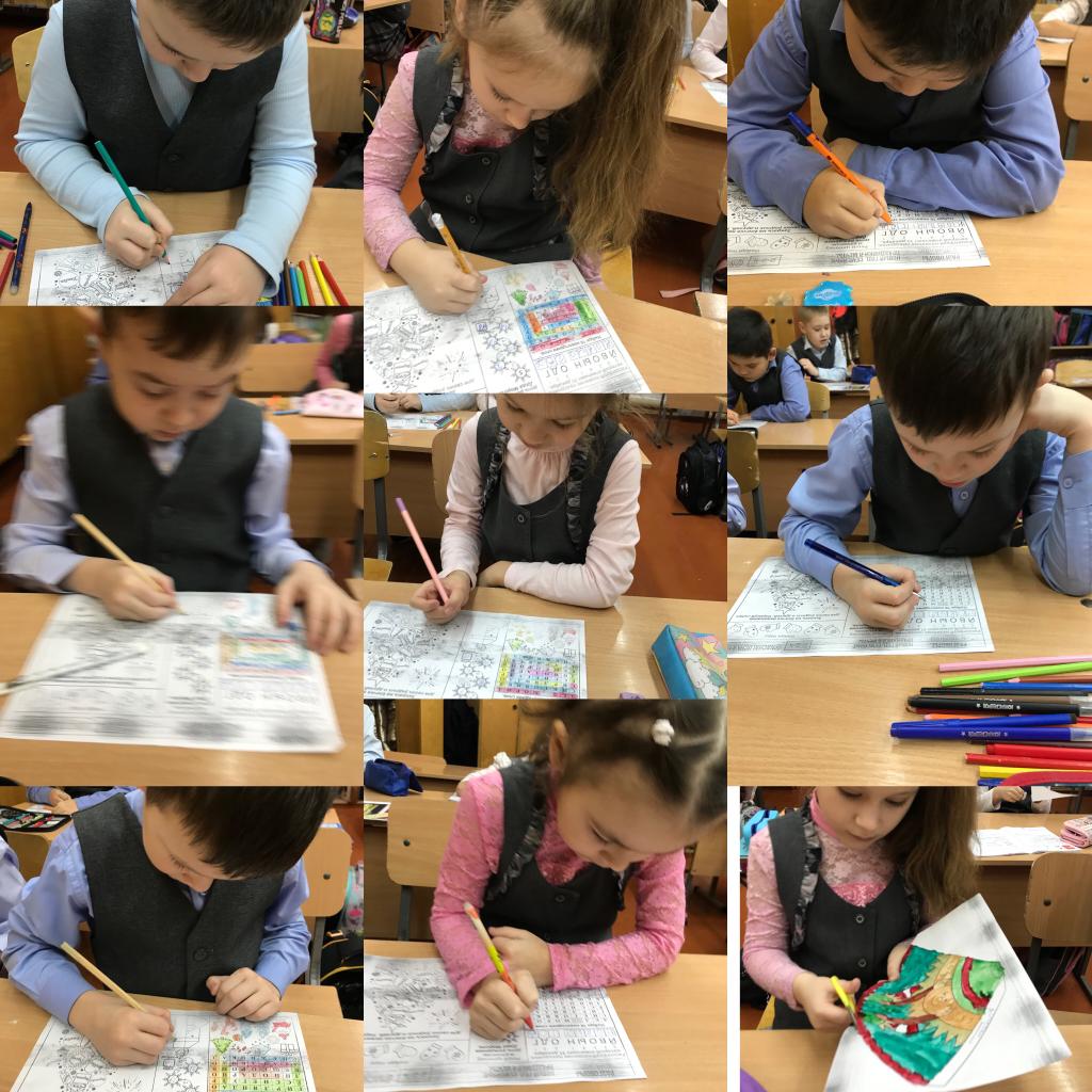 В 1в классе ребята посмотрели видеоролик о резиденции Деда Мороза и побеседовали о новогодних пожеланиях и мечтах, ведь это – важный традиционный элемент новогоднего праздника в кругу семьи. В рабочих листах выполнили задания: находили слова среди букв, раскрасили пары варежек, отгадали день рождения Деда Мороза и в конце занятия сделали новогоднюю поделку.
