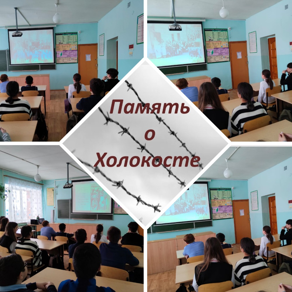 В рамках классного часа была проведена беседа с просмотром презентации. Из просмотренных слайдов обучающиеся узнали о Холокосте, причинах нацистского геноцида, о Варшавском гетто, о памятных местах жертв Холокоста, были просмотрены архивные документы и фотографии. Также была освещена деятельность концентрационных лагерей. Просмотр презентации завершился обсуждением классного часа, подведены итоги и сделаны выводы.