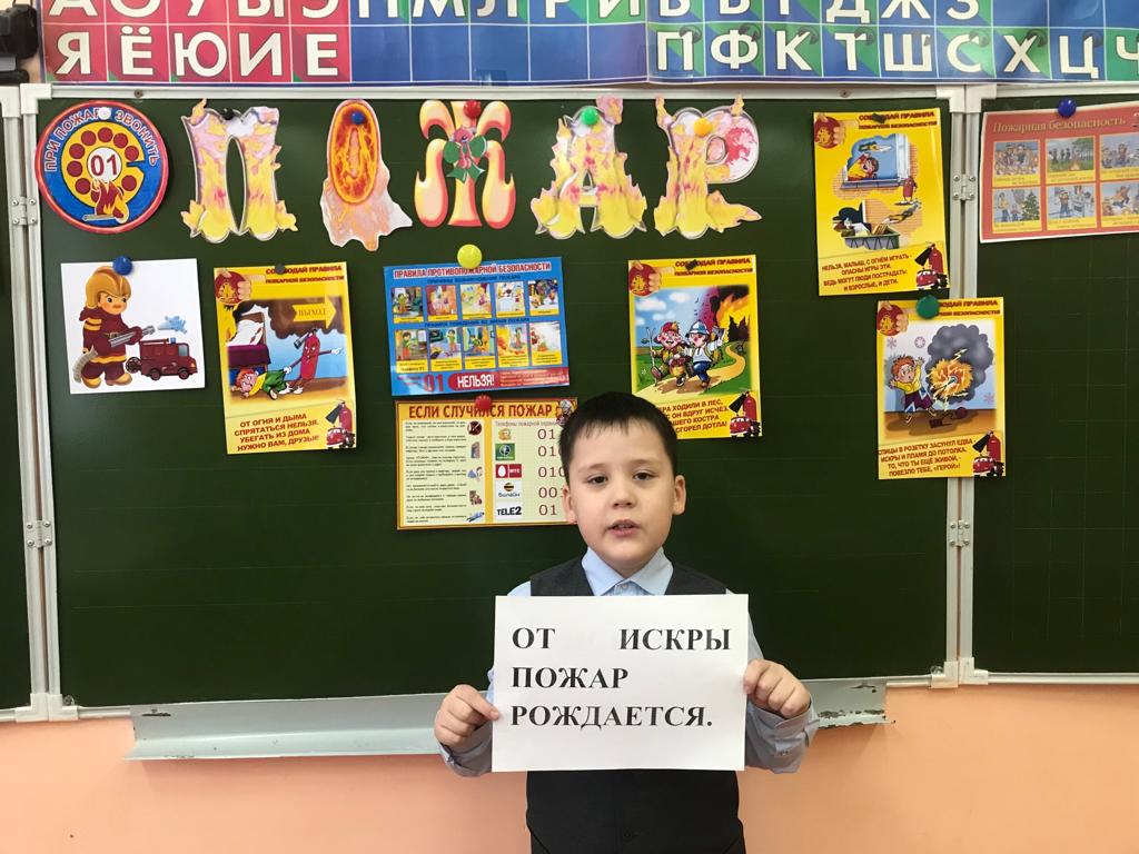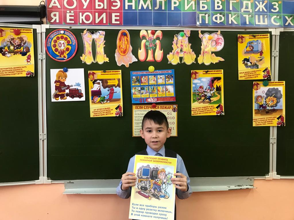 27 января в 1в классе был проведен классный час «Огонь- наш друг, огонь и враг». Дети посмотрели фильм из серии «Уроки безопасности»-«Огонь- враг или друг» и ответили на вопросы, объяснили смысл пословиц, правила поведения при возникновении пожаров. Бакирова Амира рассказала об отце, который работает пожарным в пожарной части. В конце классного часа учащиеся подготовили выставку рисунков.