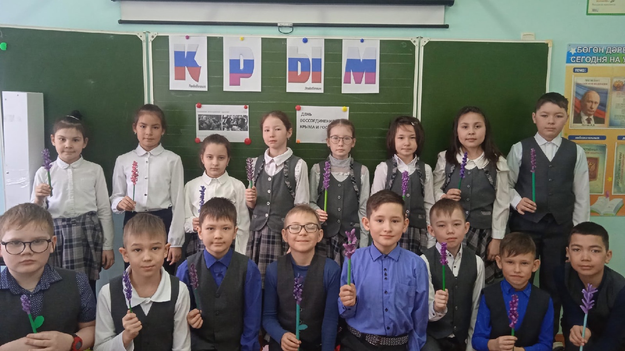 20 марта с целью формирования у детей патриотических чувств, уважения к истории своей страны, развития интереса к историческим событиям, произошедшим в Крыму 14 марта 2014 года, в 3а классе провели внеурочное занятие «Разговоры о важном» на тему «День воссоединения Крыма с Россией». 9 лет назад Крым воссоединился с великой державой – Россией! Теперь Крым и Россия навсегда едины. В нашем календаре добавилась еще одна праздничная дата – 18 марта, День воссоединения Крыма с Россией. Мы отмечаем этот день, как большой для нас праздник – «Крымская весна». Ребята присоединились к Всероссийской акции «Крымская лаванда», сделали веточки лаванды и украсили ими класс.