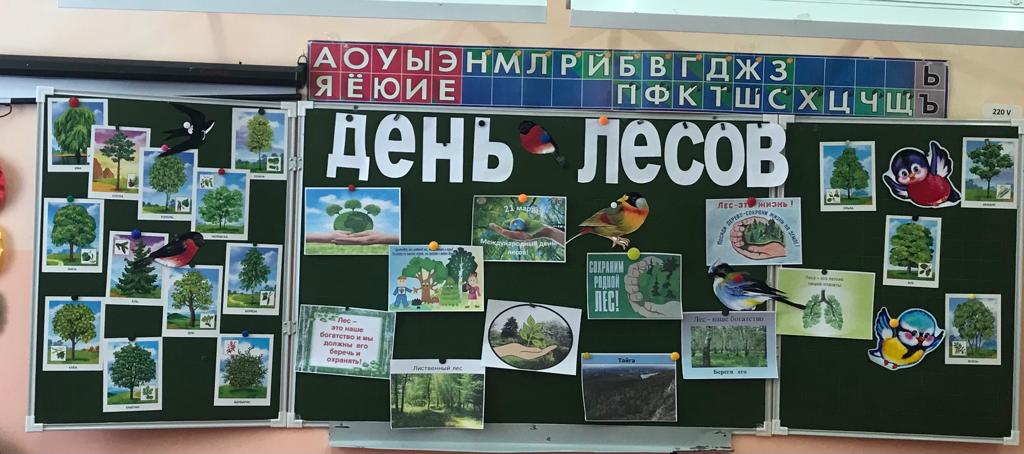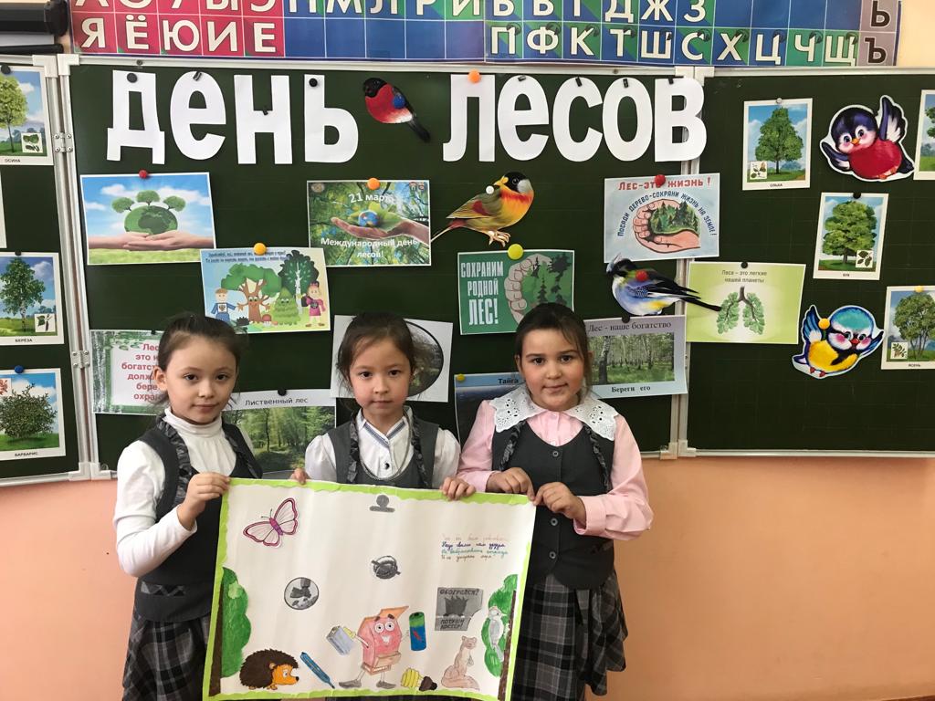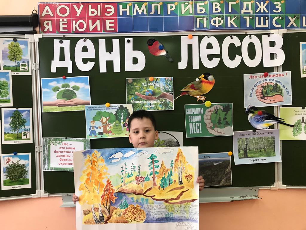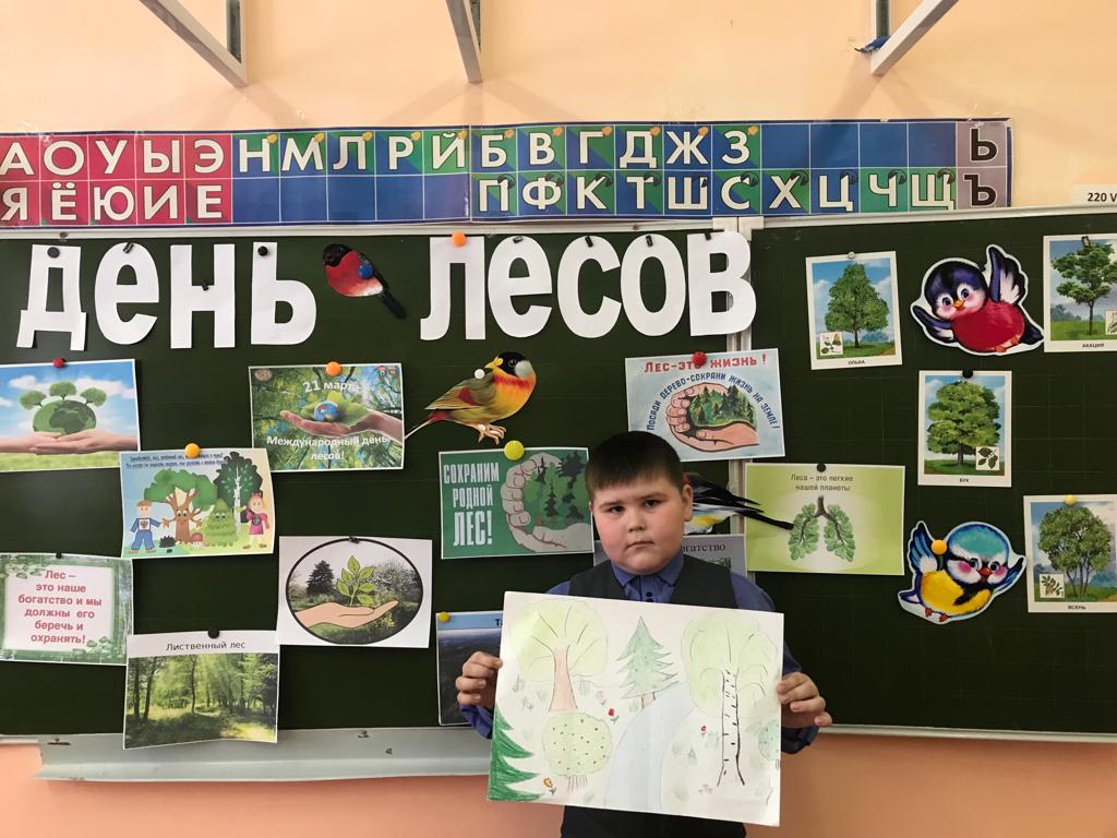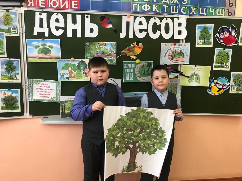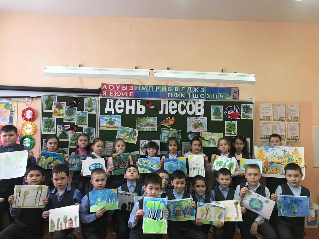 Сегодня в 1в классе прошел просветительский урок "День лесов", направленный на воспитание бережного отношения к природе В этот день во многих станах мира проводятся различные мероприятия, направленные на защиту лесов и зеленых насаждений. Ахматвалиев Тимур и Гарифьянов Максим участвуют в республиканском конкурсе, посвященном Международному дню леса. В ходе урока ребята разгадывали загадки, вспоминали названия деревьев, составляли плакаты, из пазлов - дерево. А в конце урока организовали конкурс рисунков.