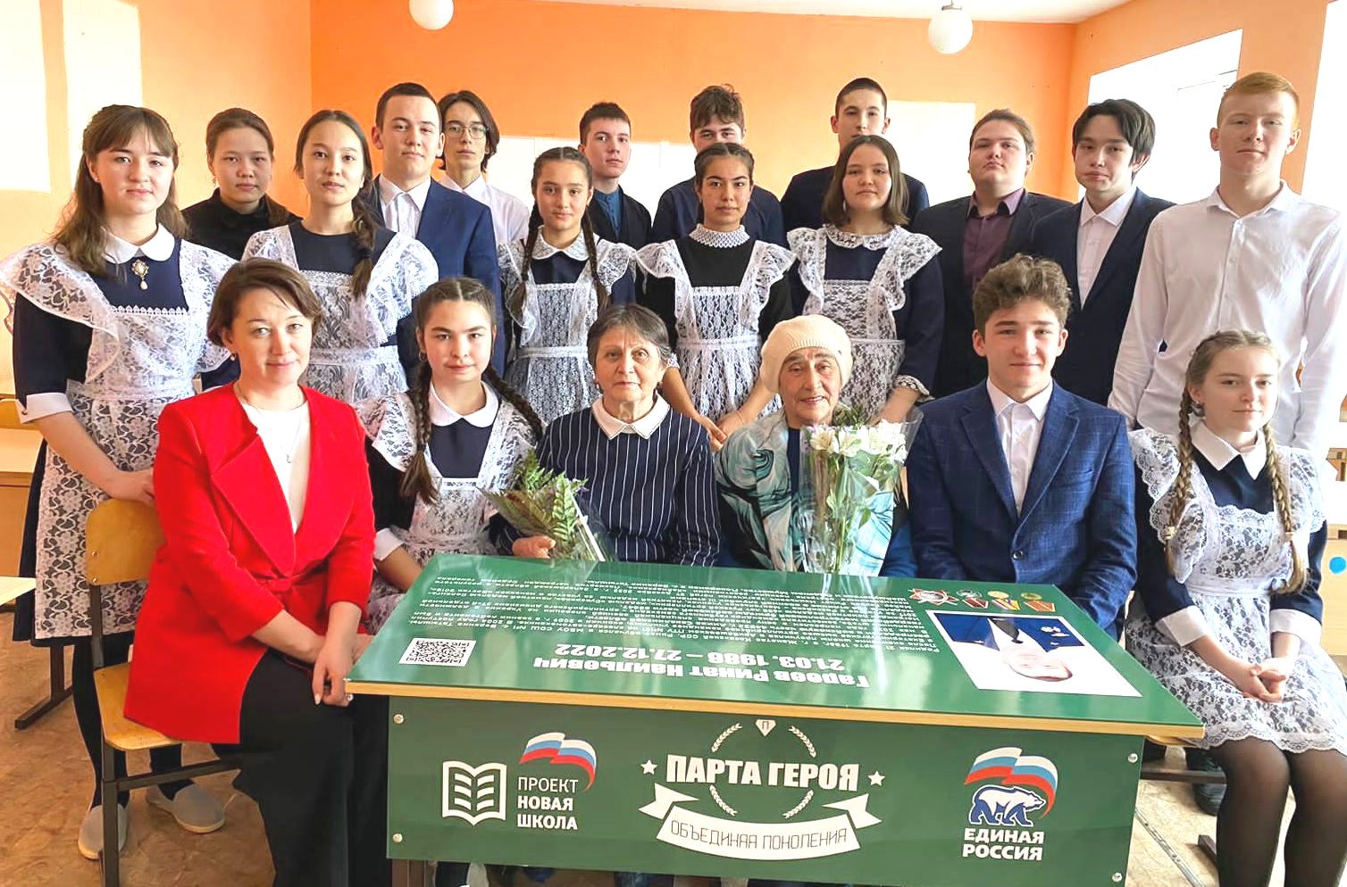Классный руководитель 10а класса Шамсетдинова Регина Абдулловна вместе с Венерой Шамилевной, Розой Садрисламовной с огромной теплотой и нежностью вспоминали школьные годы Рината. Он был талантливым учеником, трудолюбивым, добросовестным, ответственным, дисциплинированным. Роза Садрисламовна с гордостью и со слезами на глазах рассказала ребятам о том, что Ринат был хорошим сыном и лучшим братом. Она принесла фотографии сына, первую Похвальную грамоту, открытку Рината, написанную для мамы с большой любовью.