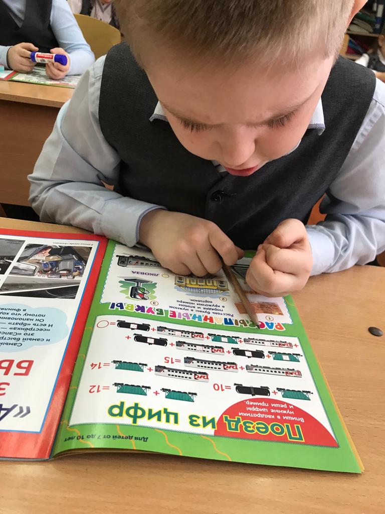 24 марта в рамках проведения профилактической акции «Внимание – дети!» в 1в классе прошел классный час «Мы учимся соблюдать правила дорожного движения». На занятии дети с увлечением работали в детском журнале от РЖД «Весёлое путешествие»: разгадывали слова, приклеивали недостающие элементы, составляли поезд из цифр.