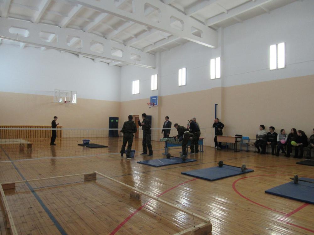 В рамках месячника оборонно-массовой, спортивной работы и военно-патриотического воспитания обучающихся 16 февраля в школе прошел спортивный вечер «А ну-ка, парни!». В нем приняли участие обучающиеся 10-11 классов. Команды 10а, 10б, 11а, 11б классов, состоявшие из четырех парней, состязались в силе, ловкости и умении работать в команде. В первом конкурсе ребятам предлагалось в виде эстафеты произвести разборку-сборку массогабаритной модели автомата Калашникова. Во втором конкурсе команды состязались в поднимании штанги. В третьем конкурсе парни должны были показать умение работать в команде, слаженно и четко преодолевая этапы полосы препятствий. Зрителям между конкурсами не давали скучать группы поддержки соревнующихся классов. Они подготовили по концертному номеру, что тоже давало дополнительные очки командам.