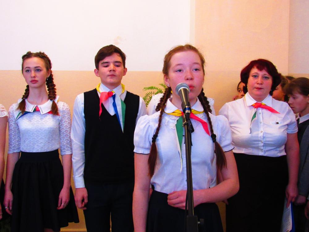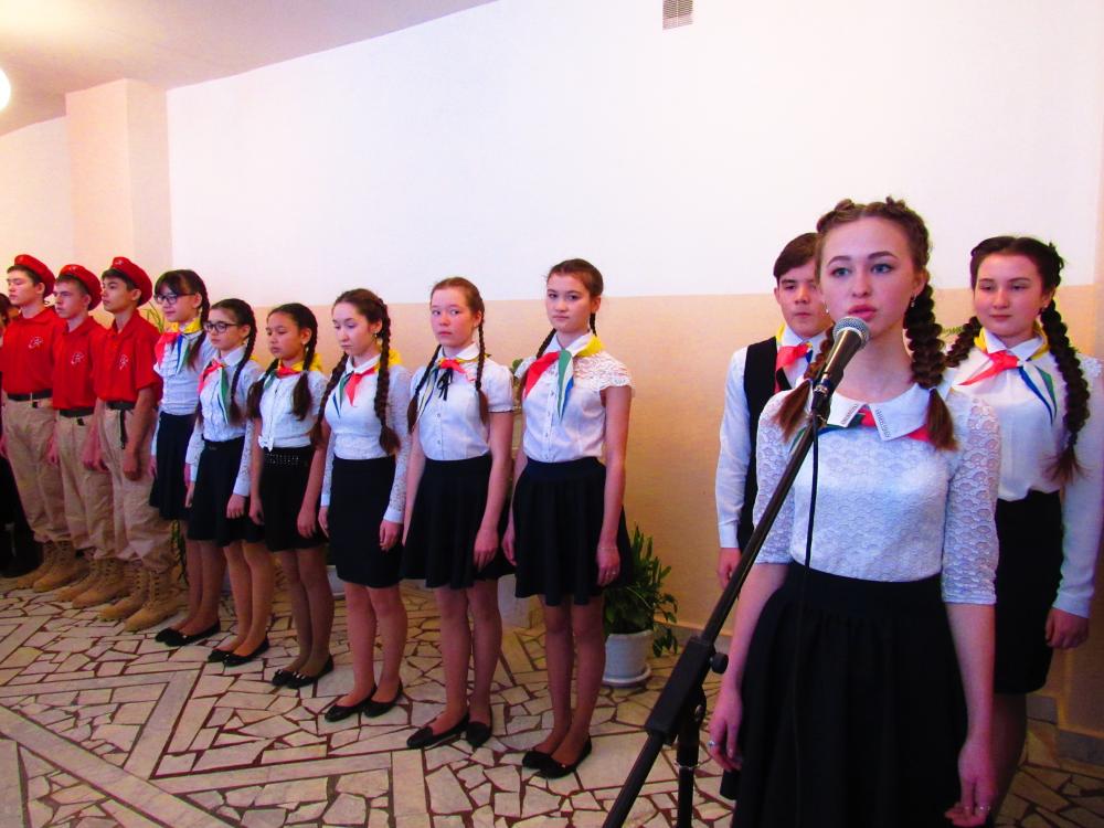 Линейка началась с торжественного исполнения гимна Российской Федерации, далее ребята рассказали об исторических фактах, прочитали стихотворения и спели песню «Кто, если не мы!»