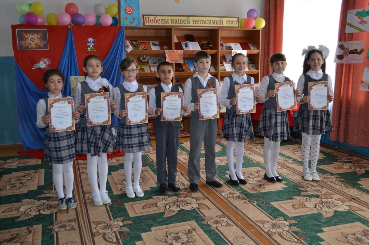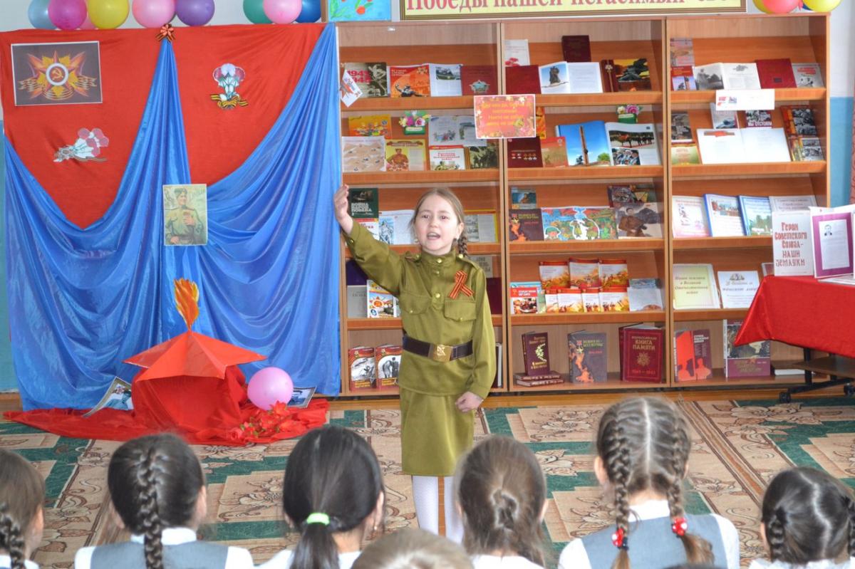 В майские дни весь российский народ чествует своих защитников и благодарит за их героический подвиг. В преддверии Дня Победы в Детской модельной библиотеки прошла литературно – музыкальная композиция «Этих дней не смолкнет слава!». На встрече выступили обучающиеся 3 классов под руководством Б.З. Кашаповой и Г.Х. Габдуллиной. Неизгладимое впечатление оставили стихи и песни военной тематики в исполнении школьников. Также ребята нарисовали и принесли рисунки, посвященные Великой Победе. В ходе мероприятия почтили память погибших минутой молчания.