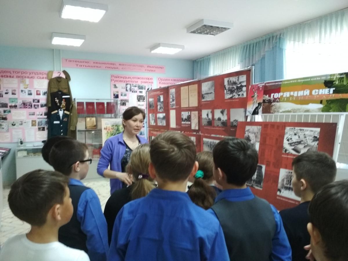 10 мая 2018 года обучающиеся 3в и 4 в классов посетили историко- краеведческий музей нашего села. Для обучающихся была проведена увлекательная и познавательная экскурсия на тему «Битва за Сталинград». Ребятам рассказали о трудностях войны, о важности Сталинградской битвы для хода всей войны, о городе - герое Сталинграде и о великой битве под Сталинградом, о подвигах солдат. Сталинградская битва стала одним из крупнейших сражений в ходе Великой Отечественной войны и переломным этапом Второй мировой войны, оказав огромное воздействие на освободительное движение народов мира, а Сталинград и его защитники стали символом мужества, героизма и Победы. Память о Сталинградской битве – это память о великом народном подвиге, душевном порыве, единстве и мужестве народа, который и был залогом этой победы