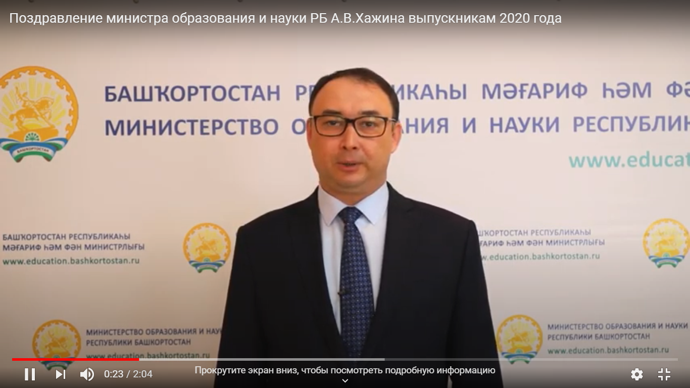 Поздравление министра образования и науки РБ А.В.Хажина выпускникам 2020 года