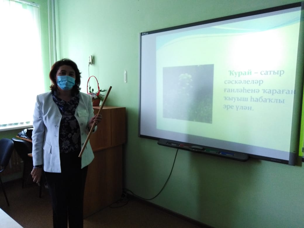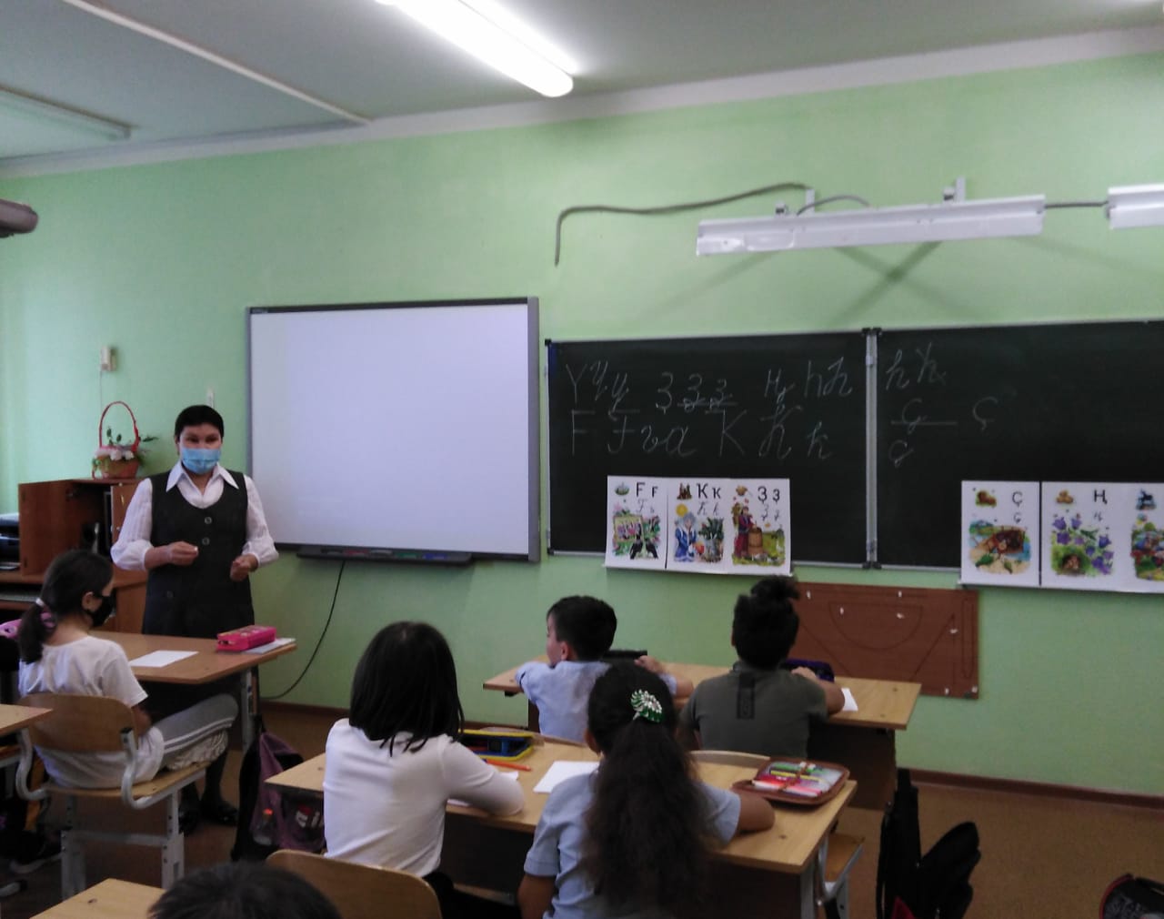 Учитель башкирского языка и литературы Нуриханова З.Ф. ознакомила детей с буквами башкирского алфавита. Назвала специфические буквы-звуки башкирского языка и научила правильно их произносить и записывать. Зиля Фаритовна провела урок с детьми среднего школьного возраста.