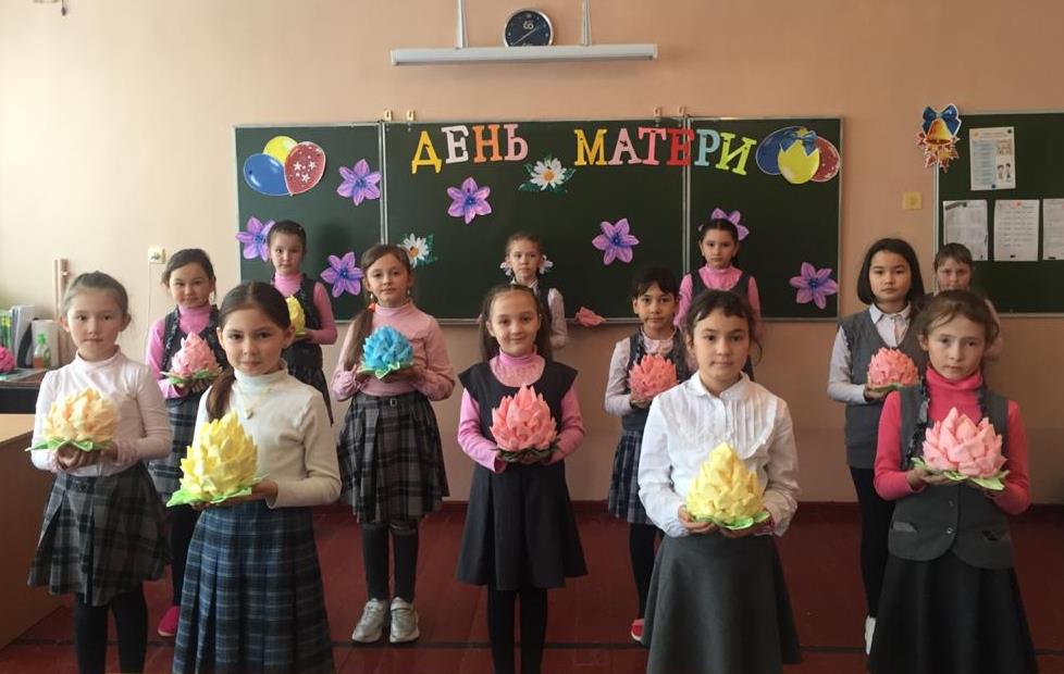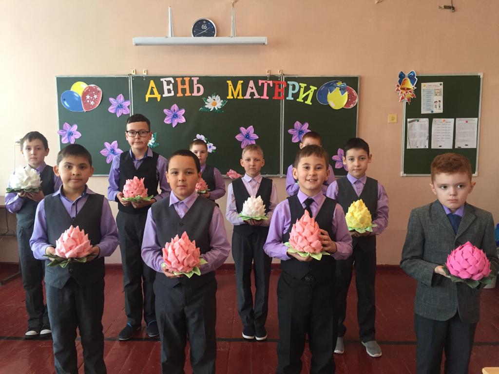 Из поколения в поколение для каждого человека мама — самый главный человек в жизни. Становясь матерью, женщина открывает в себе лучшие качества: доброту, любовь, заботу, терпение и самопожертвование. Новый праздник — День матери — постепенно входит в наши дома. В 3в классе МБОУ СОШ √1 с. Верхние Татышлы 27 ноября прошло занятие, посвященное этому празднику. Ребята изготовили подарки «лотос из салфеток» и «цветок в вазе».