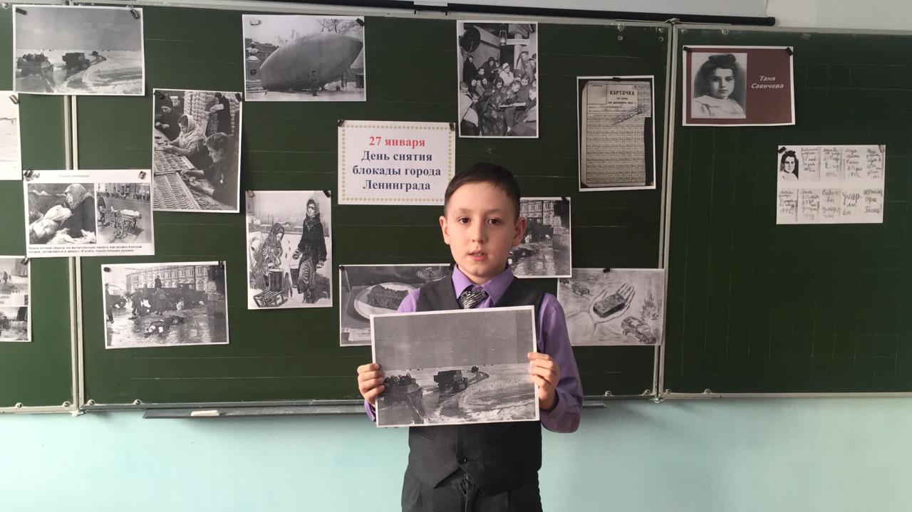25 января в 3в классе МБОУ СОШ №1 с.Верхние Татышлы состоялся классный час «День снятия блокады Ленинграда». Ребята рассказали о непростой судьбе ленинградской школьницы Тани Савичевой, которая росла в большой и дружной семье. Дети, затаив дыхание, слушали рассказ о своей ровеснице, в жизнь которой ворвалась война.