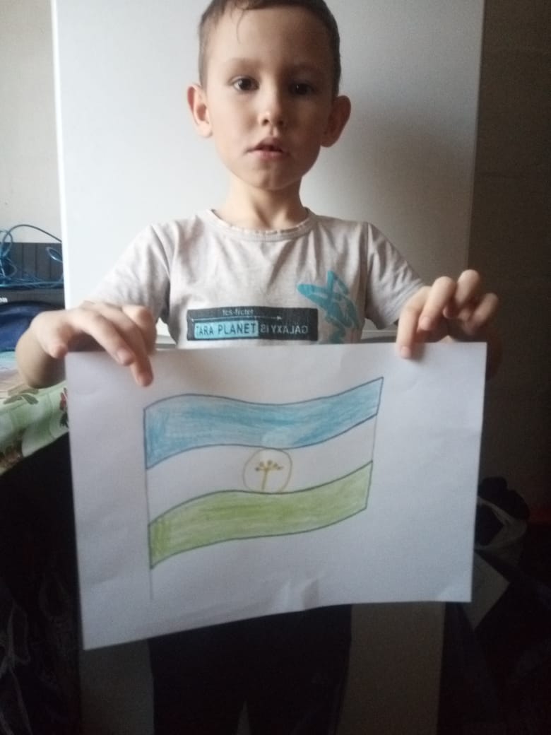 В 1 а классе МБОУ СОШ №1 с.Верхние Татышлы прошел классный час, посвященный Дню Государственного флага Республики Башкортостан. 25 февраля отмечается День Государственного флага Республики Башкортостан. Ребята узнали, что Государственный флаг Республики Башкортостан был принят 25 февраля 1992 года, авторы Масалимов Урал, Асабина Ольга. Флаг представляет собой прямоугольное трёхцветное полотнище с тремя равновеликими горизонтальными полосами - зеленого, белого, синего цветов. В центре белой полосы золотистым цветом изображена эмблема — круг, в центре которого находится стилизованный цветок курая с семью лепестками. Синий цвет означает ясность, добродетель и чистоту помыслов народов республики; белый — их миролюбие, открытость, готовность к взаимосотрудничеству; зелёный — свободу, вечность жизни. Синие и белые цвета флага РБ такие же, как у флага России являются подтверждением того, что башкиры давно связали свои судьбы с Россией на договорной основе. Ребята нарисовали флаг РБ.