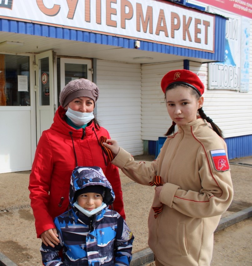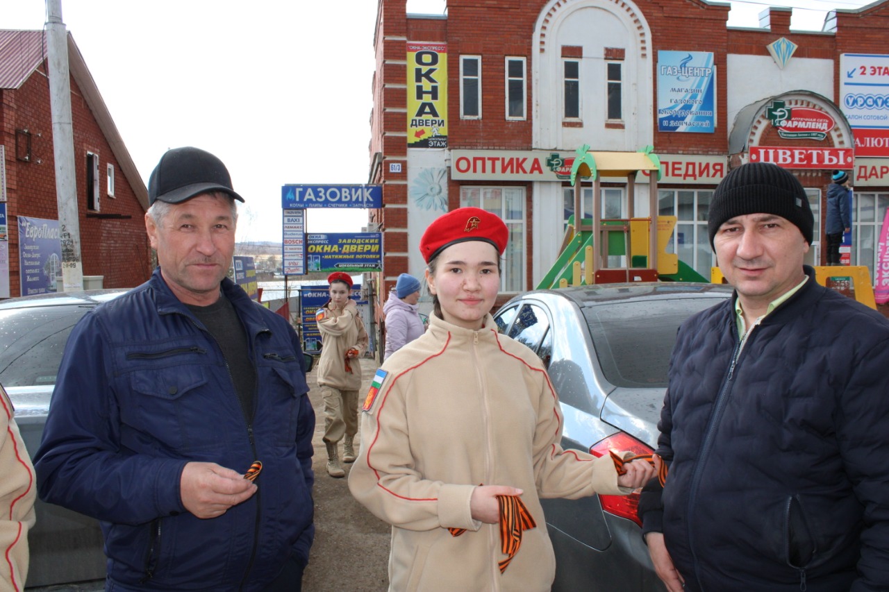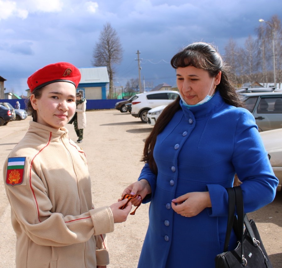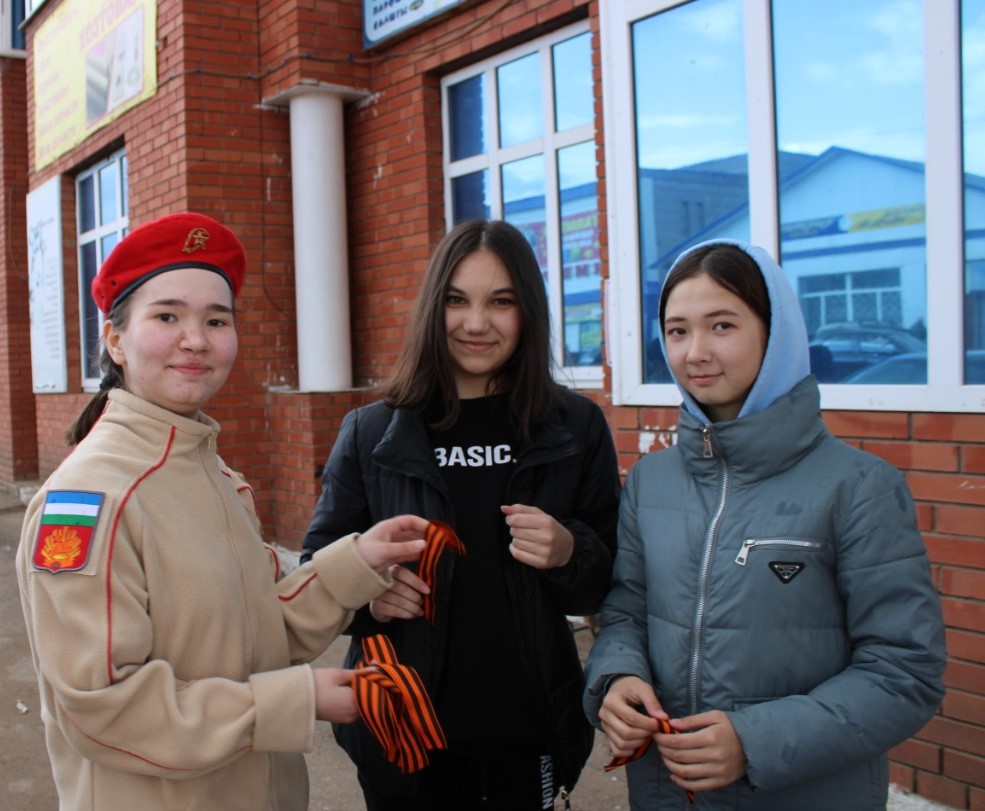 Юнармейцы МБОУ СОШ №1с.Верхние Татышлы приняли участие в акции «Георгиевская ленточка», приуроченная ко Дню Победы.