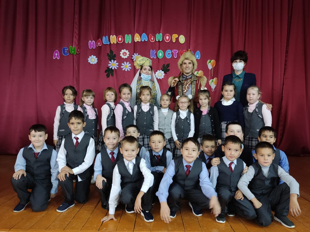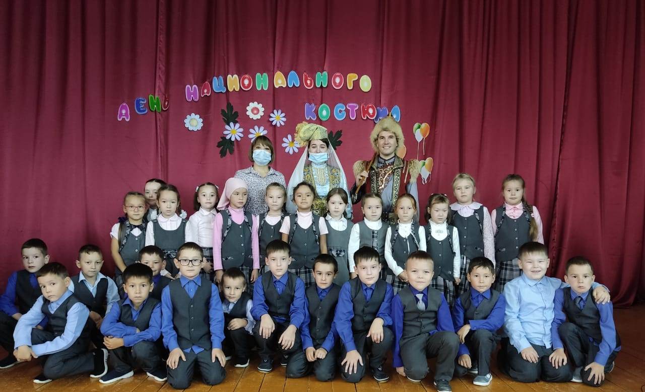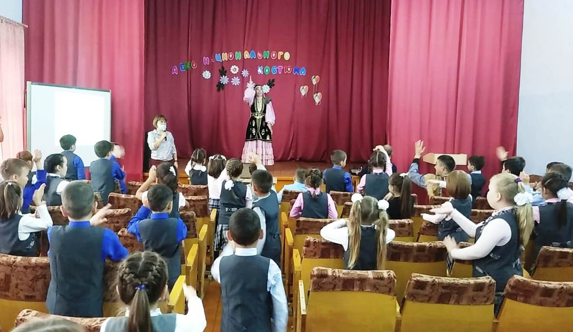 Сегодня в школе для обучающихся 1 классов прошло мероприятие, посвященное Дню национального костюма. Детям была представлена презентация, из которой они узнали много интересных фактов о башкирской, русской, украинской, татарской национальной одежде. Далее перед детьми выступили гости мероприятия - преподаватели Детской школы искусств Э.Ф. Садретдинова и А.С. Киямов. Эльвира Фанисовна исполнила башкирский и татарский танцы, показала некоторые движения. Ребята с большим удовольствием повторяли все эти движения. Айнур Саубанович рассказал детям о башкирских народных инструментах курае и кубызе. Затем он сыграл различные мелодии на этих инструментах. Мальчикам особенно понравилось звучание кубыза. После выступления Айнуру Киямову ребята задали очень много вопросов.
