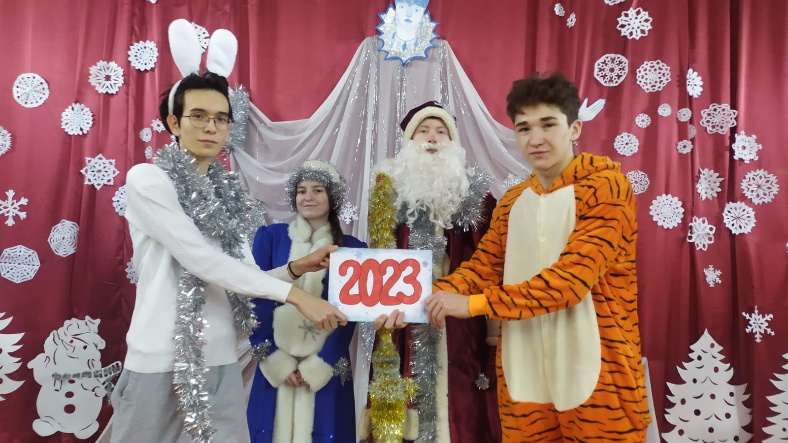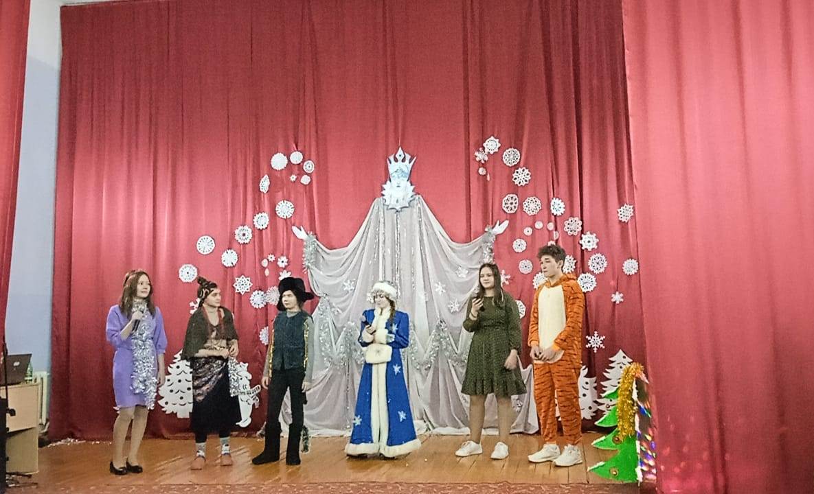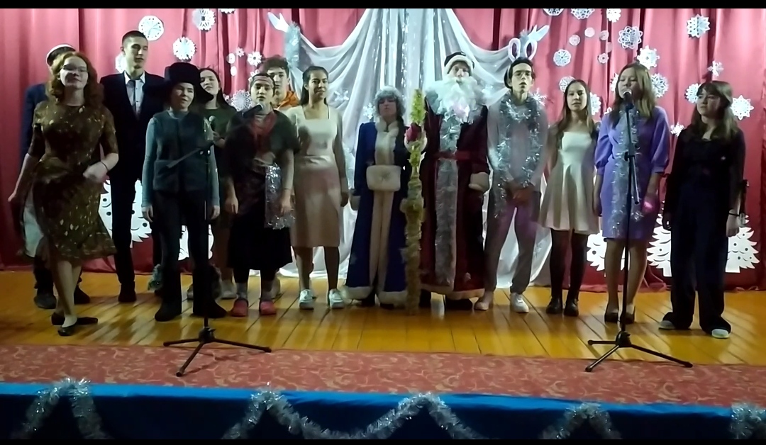Для обучающихся 7-11 классов новогоднее представление подготовили учащиеся 10а класса. Зал со зрителями превратился в театр, на сцене которого разыгрывали настоящее представление. Ребята в полной мере продемонстрировали свои актёрские способности. Песни и танцы сменяли друг друга. Несколько часов пролетели как один миг.