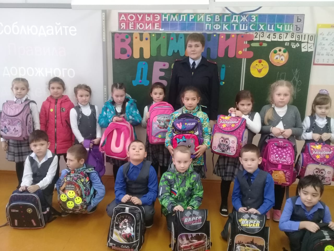 В рамках акции «Внимание - дети!" с обучающимися 1а и 1б классов была проведена профилактическая беседа с приглашением инспектора по пропаганде безопасности дорожного движения Р.Р.Рахимовой. В ходе беседы дети посмотрели презентацию на тему «Основные нарушения ПДД, которые допускают дети-пешеходы». Были рассмотрены основные причины, по которым дети и подростки могут пострадать в ДТП: 1) перевозка детей в салоне автомобиля без использования специальных удерживающих устройств; 2) наезды на детей-пешеходов по вине водителей; 3) дети выбегают на проезжую часть из-за стоящих маршрутных транспортных средств или других объектов, загораживающих видимость дороги водителю; 4) в ДТП могут попасть подростки, управляющие скутерами или мопедами.