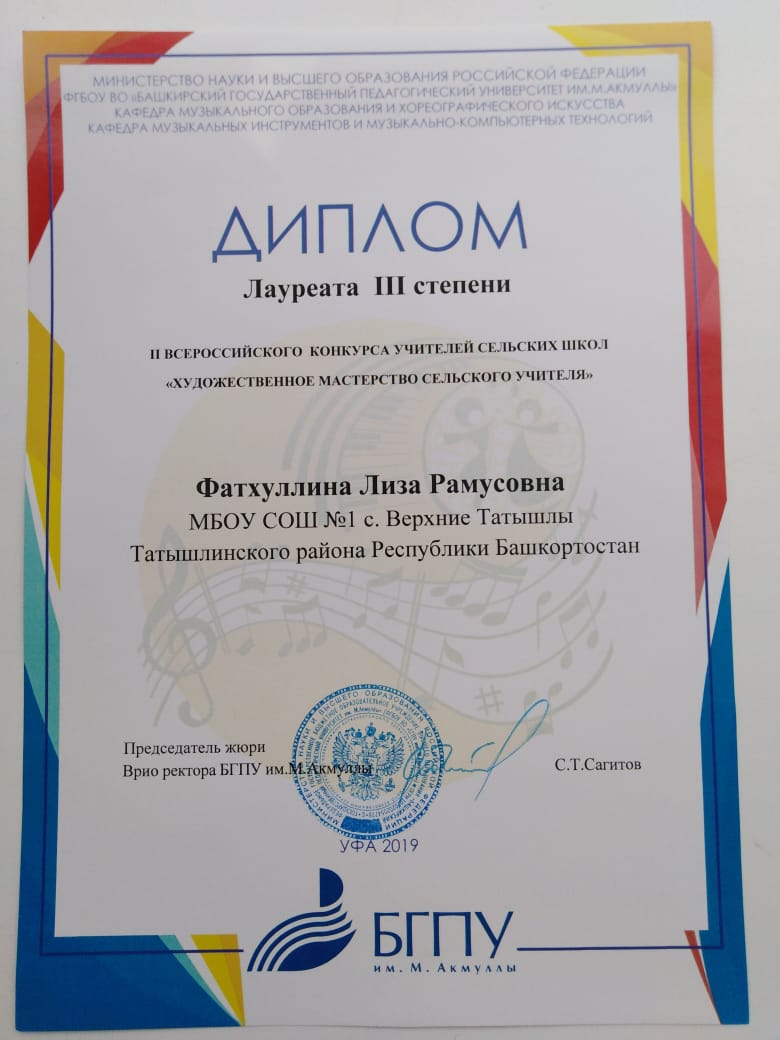 30 марта 2019 года в г.Уфа состоялся республиканский конкурс учителей сельских школ «Художественное мастерство сельского учителя», организованный Башкирским государственный педагогическим университетом им.М.Акмуллы при поддержке Министерства культуры и Министерства сельского хозяйства Республики Башкортостан.