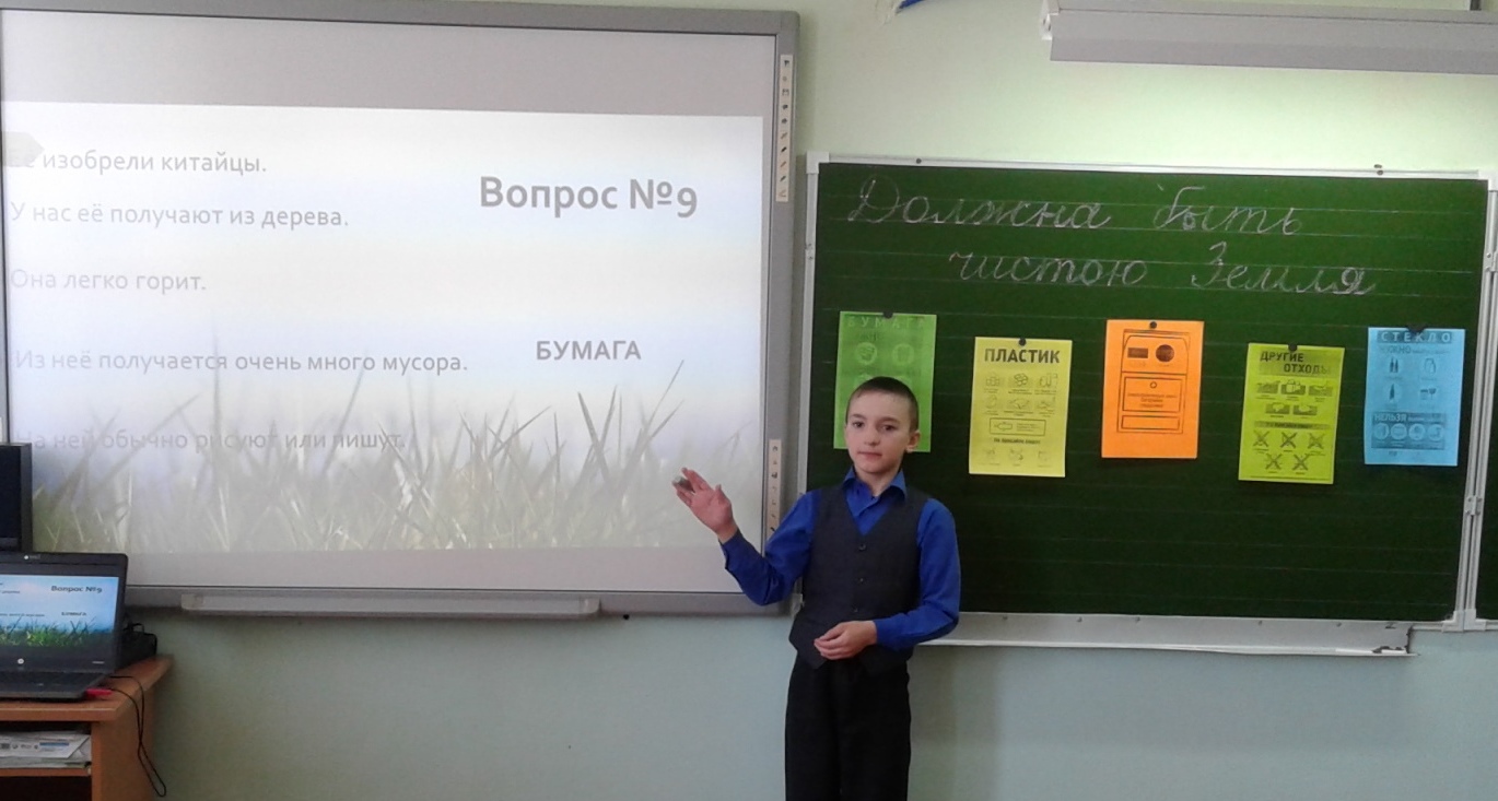 В рамках акции «Неделя экологической грамотности» в 3в классе прошел классный час «Должна быть чистою Земля», посвященный реформе в сфере обращения с ТКО и раздельному сбору отходов. Целью занятия являлось формирование экологически грамотной позиции школьников по отношению к проблеме коммунально-бытовых отходов.