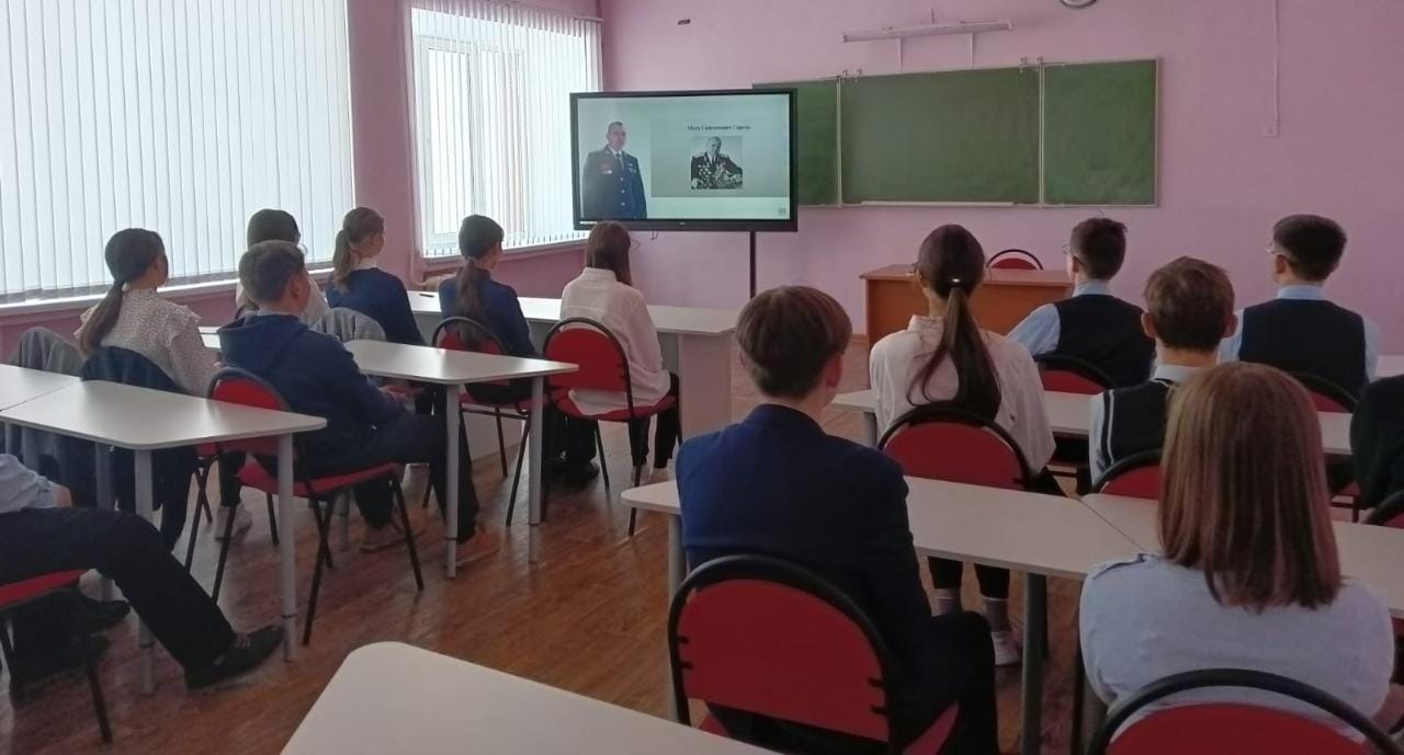 22 февраля в 8а классе прошел просмотр видеоурока «Муса Гареев – славный сын Башкортостана», предоставленный Министерством образования и науки Республики Башкортостан в рамках проведения мероприятий, посвященных Дню защитника Отечества.