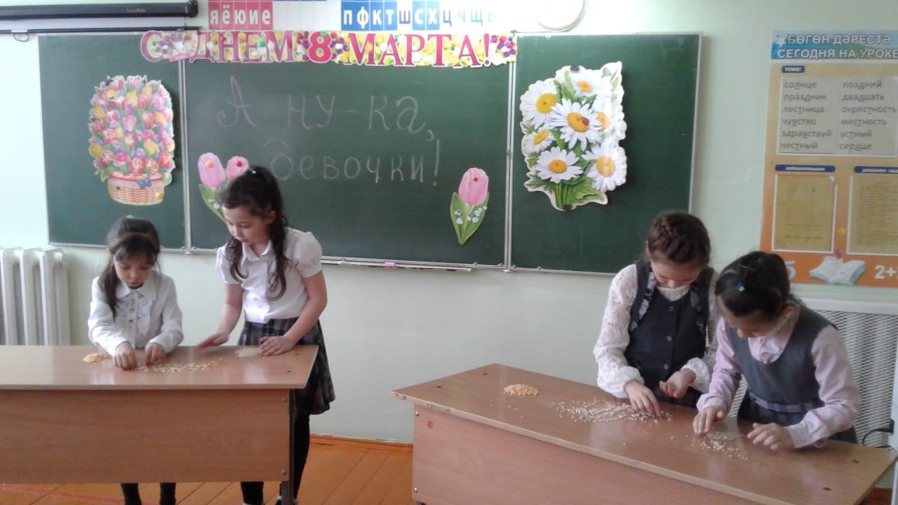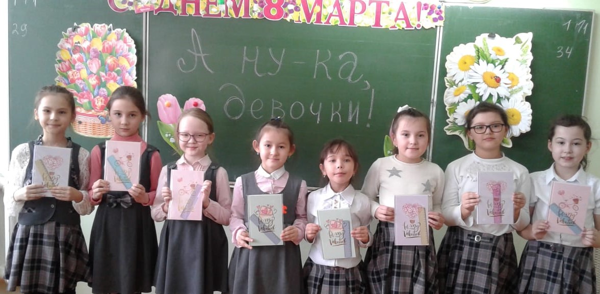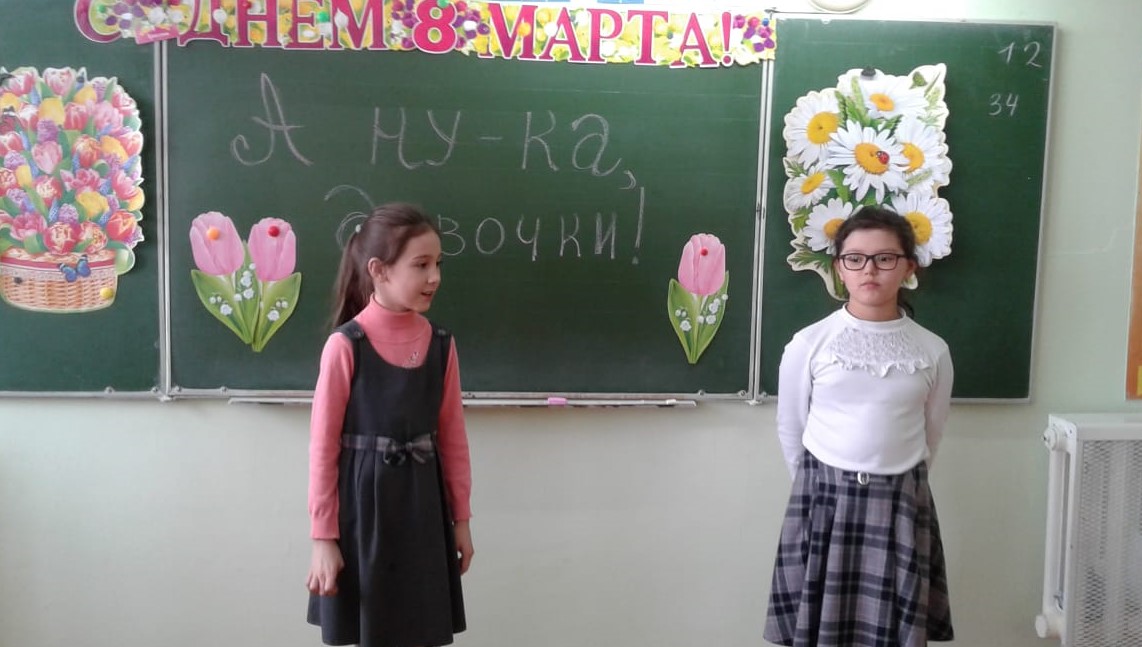 Во 2б классе МБОУ СОШ №1 с. Верхние Татышлы прошло мероприятие «А ну-ка, девочки!», посвященное Международному женскому дню. Команды «Подснежники» и «Ромашки» соревновались в остроумии и красноречии, ловкости и быстроте. В итоге победила дружба.
