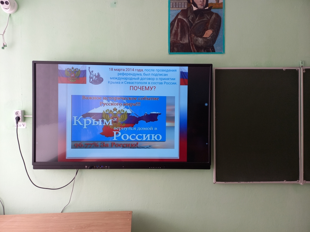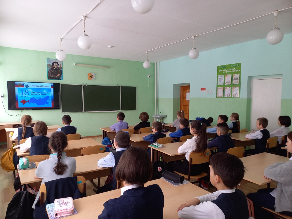 14 марта в 5а классе прошел классный час "День воссоединения Крыма с Россией". Цель- воспитание интереса к изучению прошлого своей Родины, чувства уважения к истории России и гордости за свою страну и её народ, патриотизма.