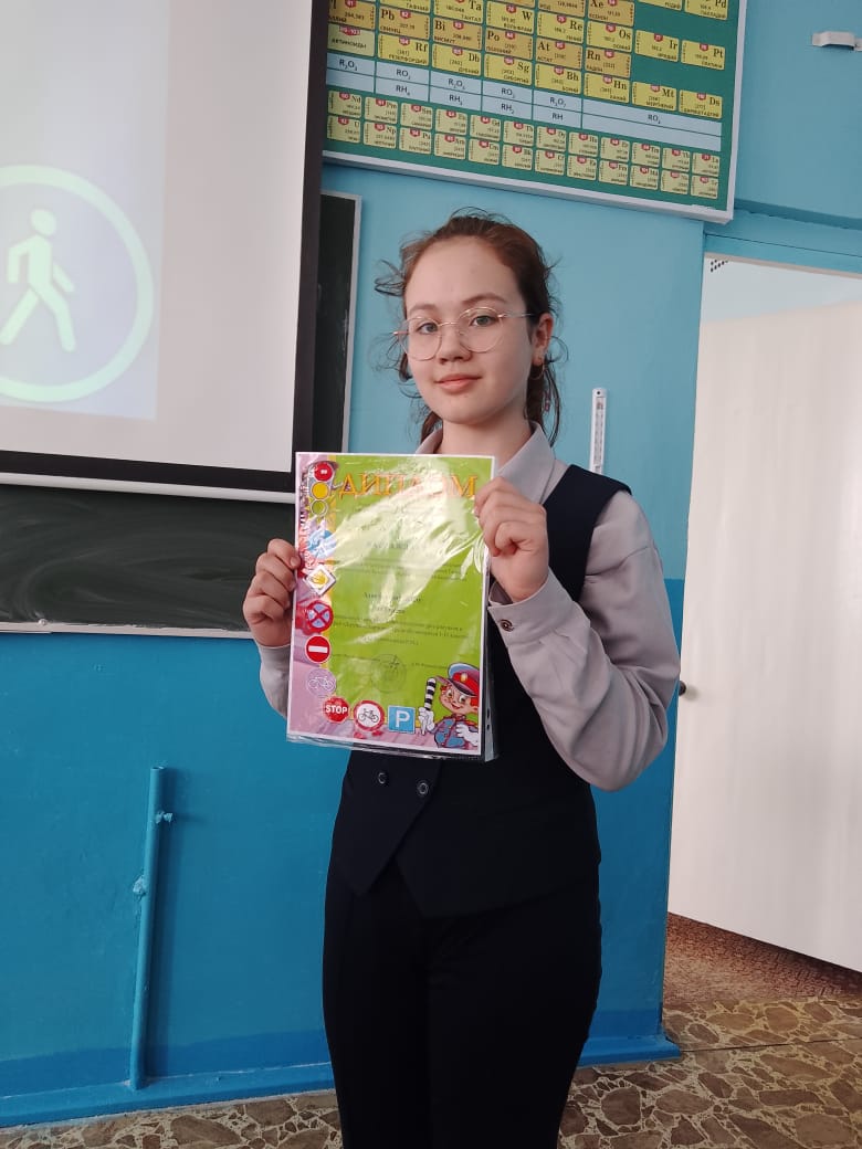 Лэйла Адиятуллина является победителем муниципального этапа республиканского конкурса рисунков и фотографий «Дорожные картинки» среди обучающихся 1-11 кл. Она рассказала одноклассникам, почему ей интересно рисовать на различные темы по ПДД.
