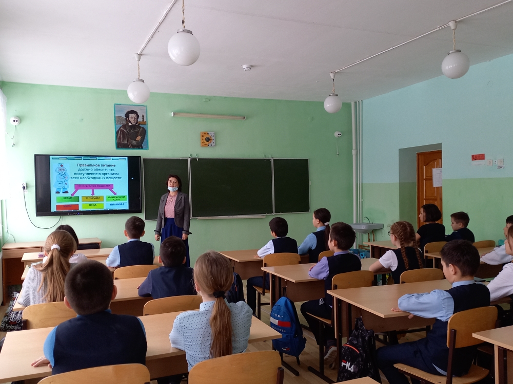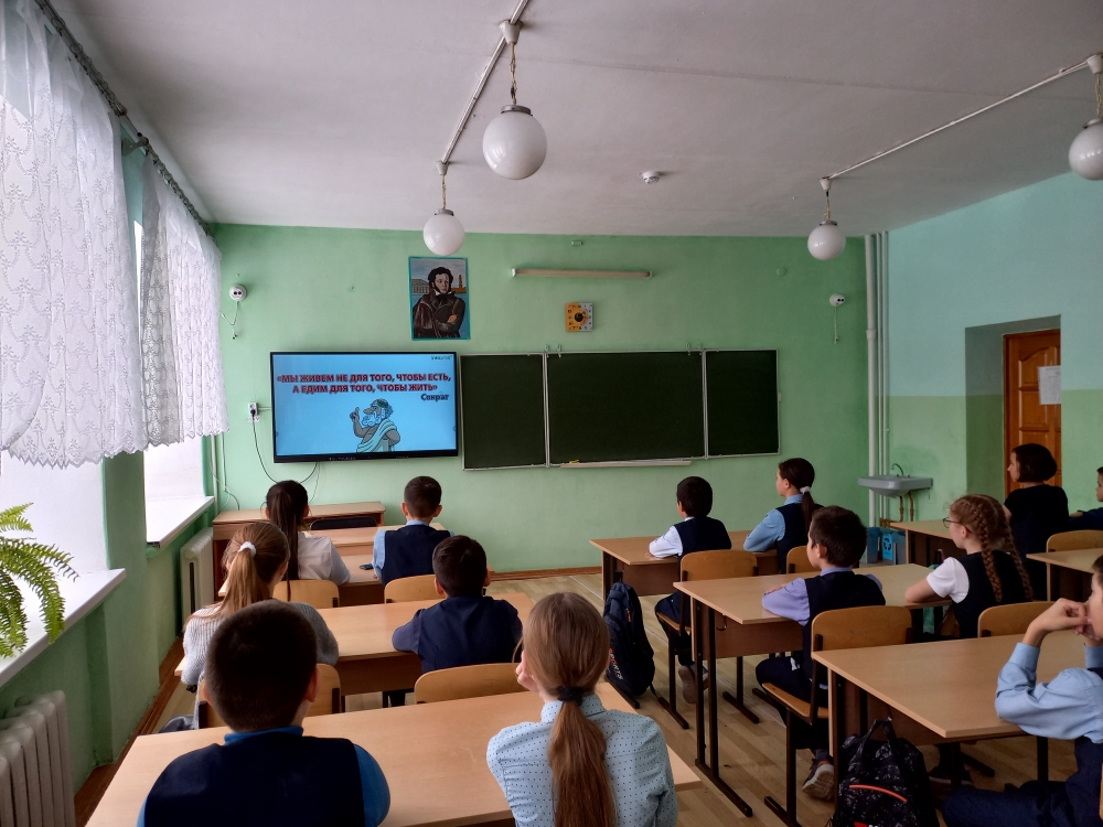 5 апреля в рамках Недели здорового питания в 5а классе классный руководитель Авхадиева А.Х. провела внеурочное занятие на тему «Здоровое и правильное питание». Обучающиеся посмотрели видеоролик о здоровом образе жизни, поговорили о составляющих правильного питания, выполнили тест на данную тему.