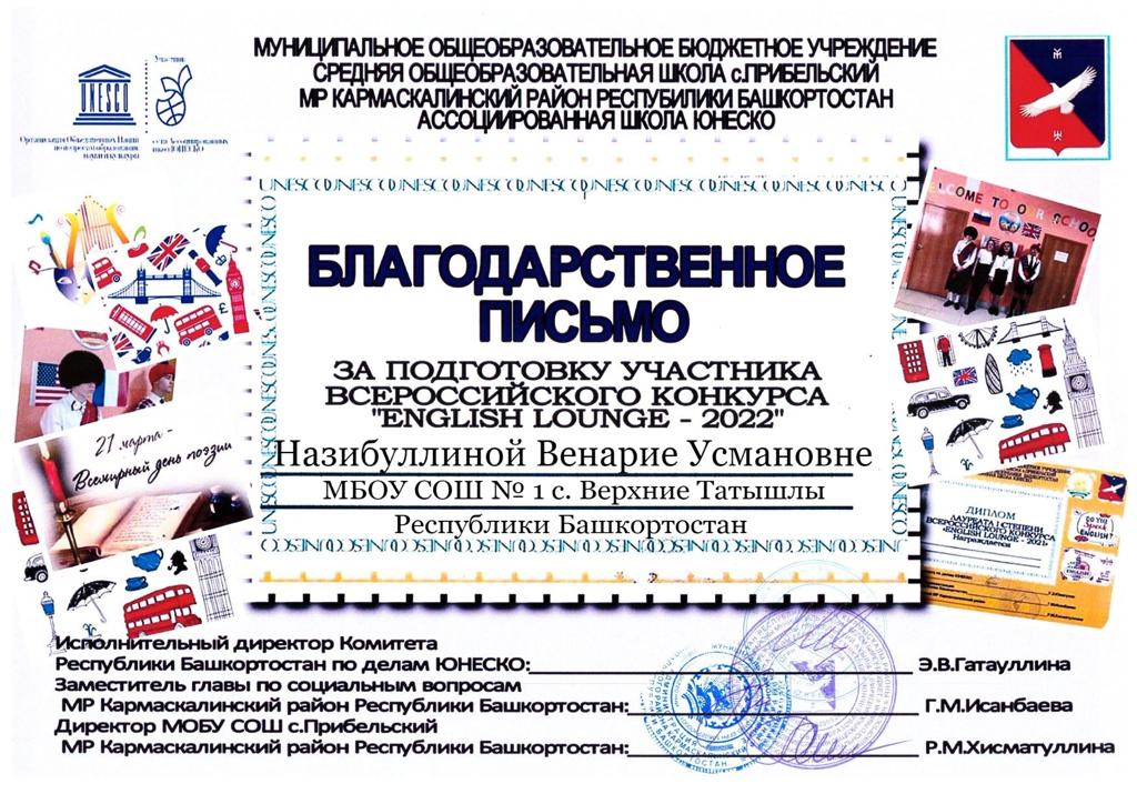 Подведены итоги Всероссийского конкурса «Английская гостиная-2022» среди обучающихся Ассоциированных школ ЮНЕСКО, Клубов ЮНЕСКО Российской Федерации и Клубов друзей ЮНЕСКО Республики Башкортостан.