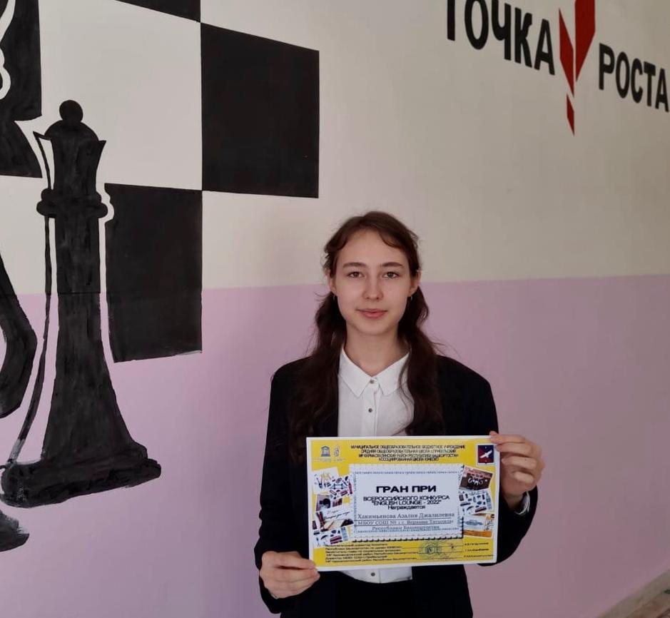 В номинации «Современный Гид/блогер» свою изумительную работу, видео-экскурсию по родному селу, представила Хакимьянова Азалия, обучающаяся 10а класса. Она признана победителем в данной номинации, обладателем Гран-При конкурса.
