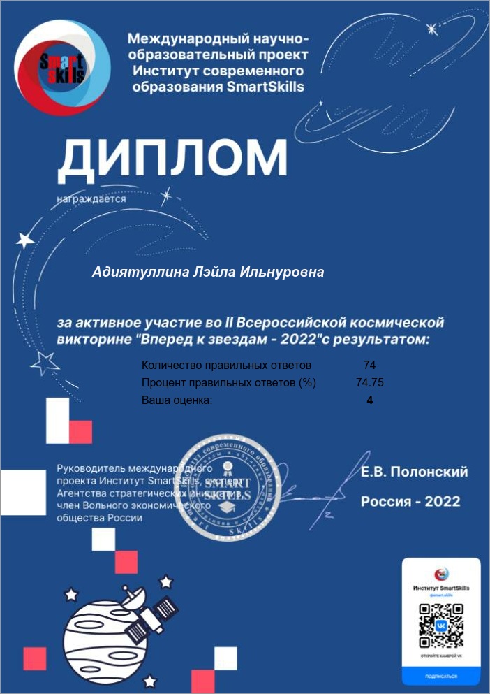 Обучающиеся 6 классов приняли активное участие во II Всероссийской космической викторине «Вперед в космос – 2022»
