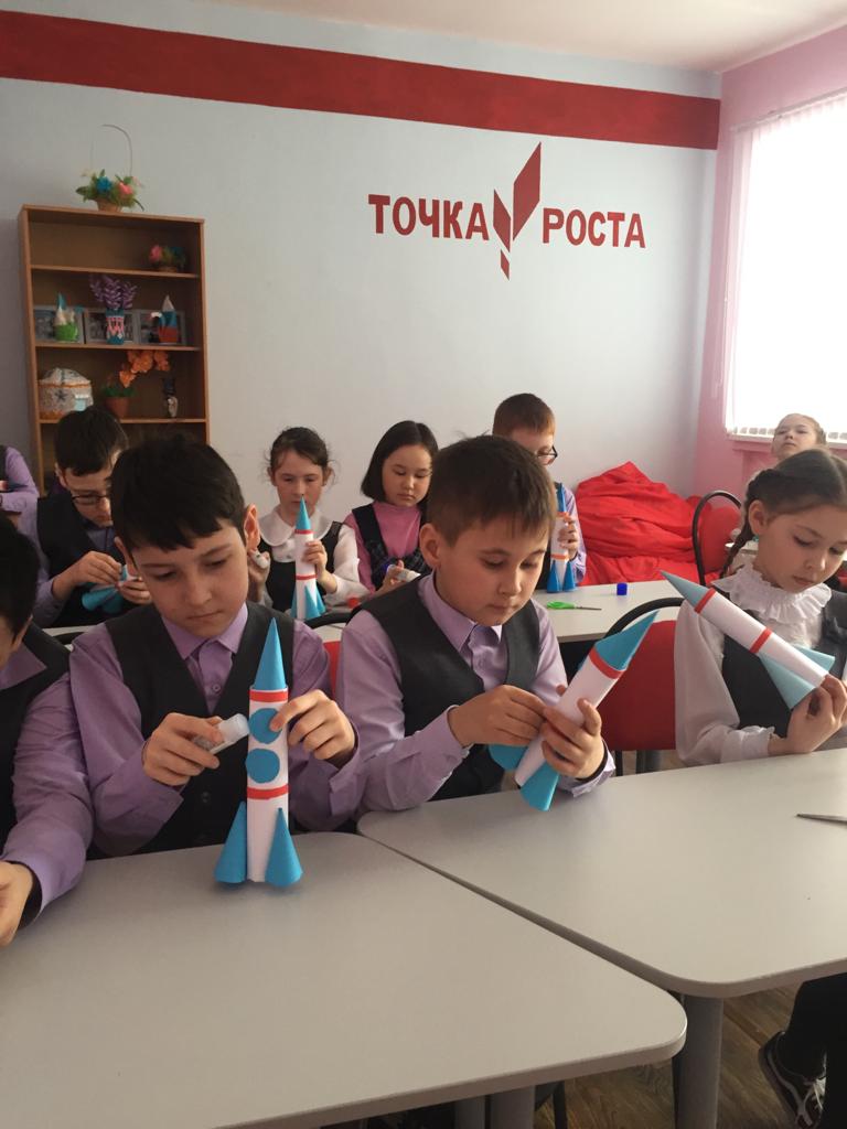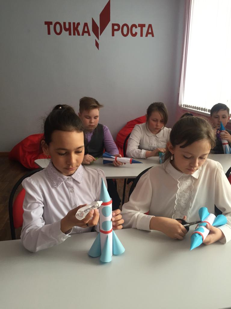 12 апреля в День космонавтики руководитель кружка «Умелые руки» Центра гуманитарного и цифрового образования «Точка роста» Минхаматова Зинира Гайнылзяновна провела мастер-класс на тему "Ракета из бумаги". Для детей интересным является не только процесс, но и конечный результат, когда из простого листа бумаги рождается необычная поделка. Вот и в поделке ко Дню космонавтики ребята сделали ракету способом складывания листа бумаги пополам. И с этой работой дети справились отлично.