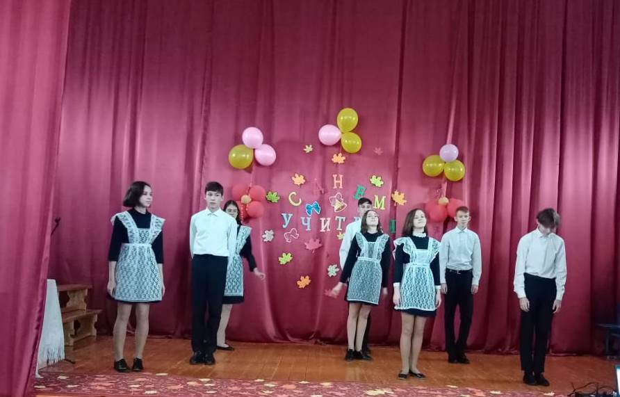 Сегодня в День учителя учащиеся 9а и 9б классов с большим воодушевлением и задором показали веселый концерт. Здесь звучали звонкие голоса хора, соло. Происходили разные ситуации из школьной жизни в шуточной форме. Под звуки флешмобов и вальса учителя окунулись в молодые годы. Это было красиво! Спасибо, ребята, за прекрасное настроение, великолепный концерт!