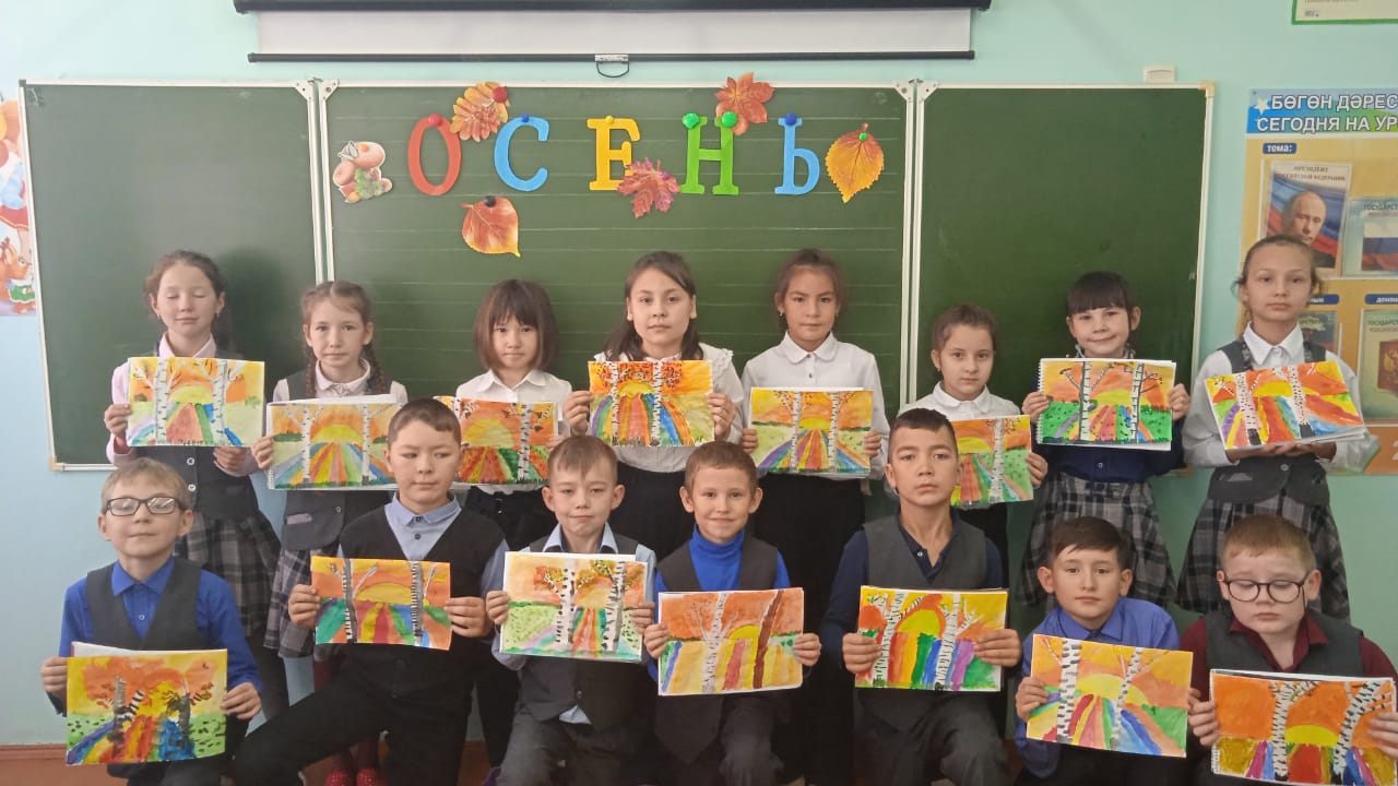 В 3а классе прошло внеурочное занятие "В мире искусства". Посвятили занятие золотой осени. Ребята называли приметы осени, изменения в природе. Нарисовали рисунки.