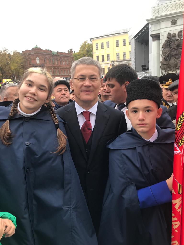 Этой высокой чести удостоились и наши обучающиеся 7в класса вместе с классным руководителем З. Ф.Нурихановой и военным куратором Д. Г. Афризоновым. Юные шаймуратовцы принесли торжественную клятву с честью носить имя легендарного комдива, быть преданными Башкортостану и России, достойными памяти павших за Родину, верными сыновьями и дочерьми родной земли, готовить себя к службе Отечеству и следовать девизу шаймуратовцев: «Потомки Салавата отступать не умеют».