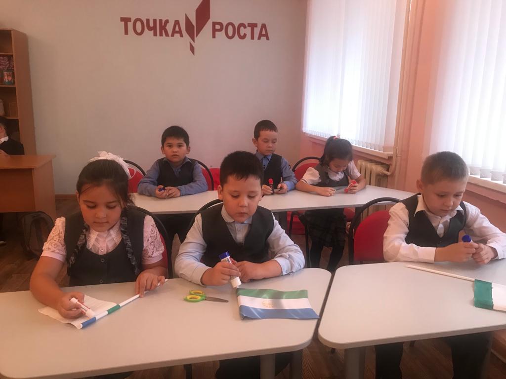 Обучающиеся кружка «Умелые руки» Центра гуманитарного и цифрового образования «Точка роста» закрепили свои знания о символике республики, о значении цветов и эмблем, с гордостью слушали гимн республики и в конце занятия сделали флаг Башкортостана.