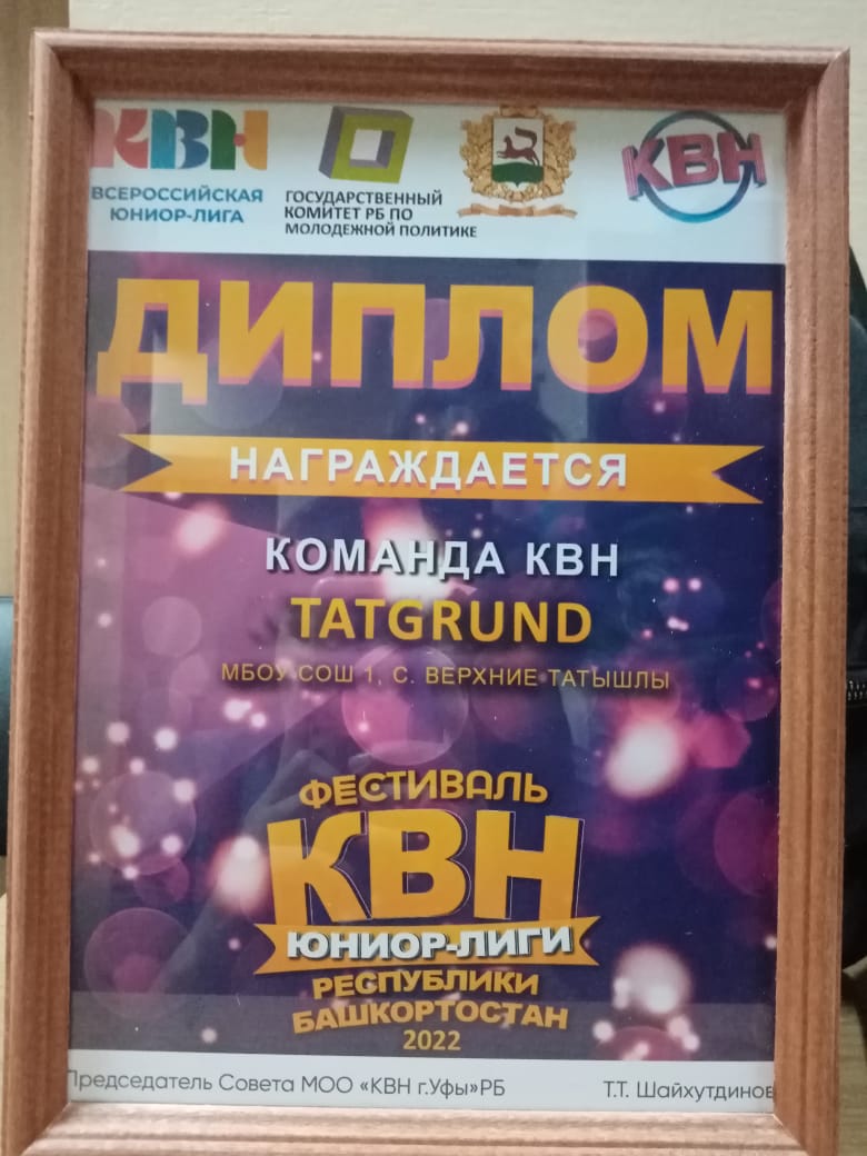 Команда МБОУ СОШ №1 «Tatgrand» приняла участие в фестивале Юниор-лиге КВН. Ребята были награждены дипломом за участие и памятными призами, получили море эмоций и хорошего настроения.