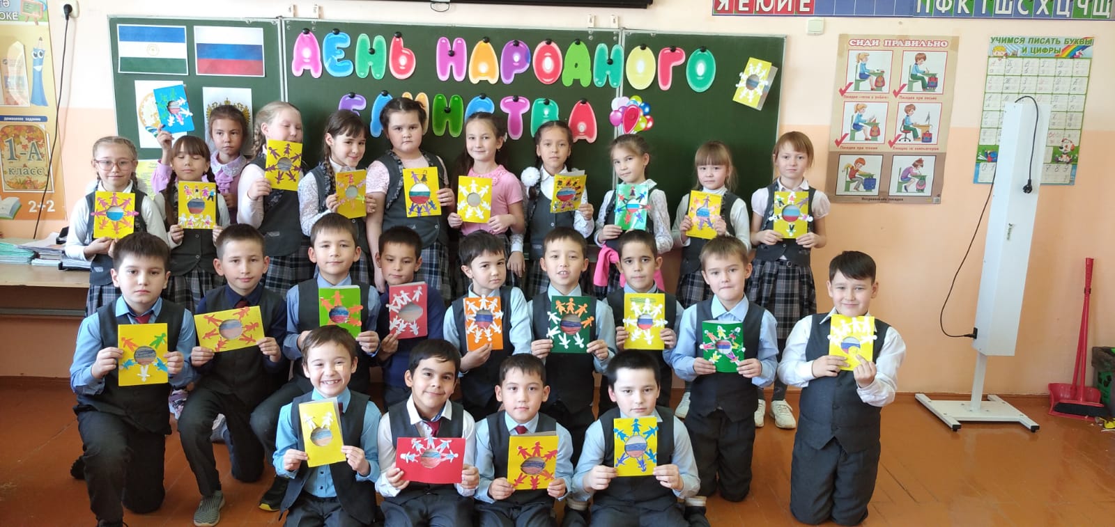 На прошедшей неделе во 2в классе прошли занятия, посвященные Дню народного единства. Обучающиеся познакомились с историей возникновения праздника, подвигами наших предков во имя независимости Родины. Отвечали на вопросы викторины. В конце урока дети выполнили небольшое творческое задание - создали цветок единства. Данное мероприятие способствовало формированию чувства гордости за страну, воспитанию уважения к её истории. На уроке технологии ребята сделали открытки.
