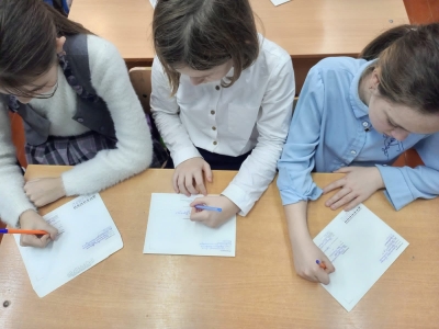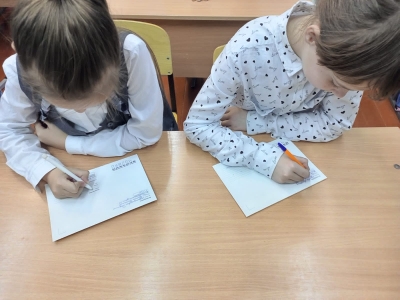 А на уроке родного русского языка обучающимся 4 классов был задан вопрос, что вы знаете об эпистолярном жанре, чем был вызван интерес к теме урока. В мире гаджетов, скоростного интернета, быстрого обмена информацией, нехватки времени особый интерес вызывает изучение эпистолярного жанра в его классической форме. Чтобы устранить пробел в знаниях, ребята прочитали рассказ Н.Т.Федорова «Переписка» и сами смогли ответить на вопрос урока, подобрать слова, которые относятся к описанию темы. Оказалось, что они никогда не писали и никогда не получали писем через почту. Решили исправить это положение. Ребята с увлечением и с большим интересом подписали конверты, научились писать индекс, узнали, зачем нужна марка, кто такой отправитель (адресант), а кто такой получатель (адресат), познакомились с примерным планом написания письма. Договорились, что первое письмо мы напишем своему лучшему другу. А на следующий урок запланировали экскурсию в почтовое отделение.